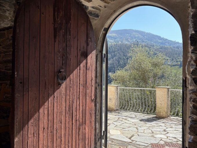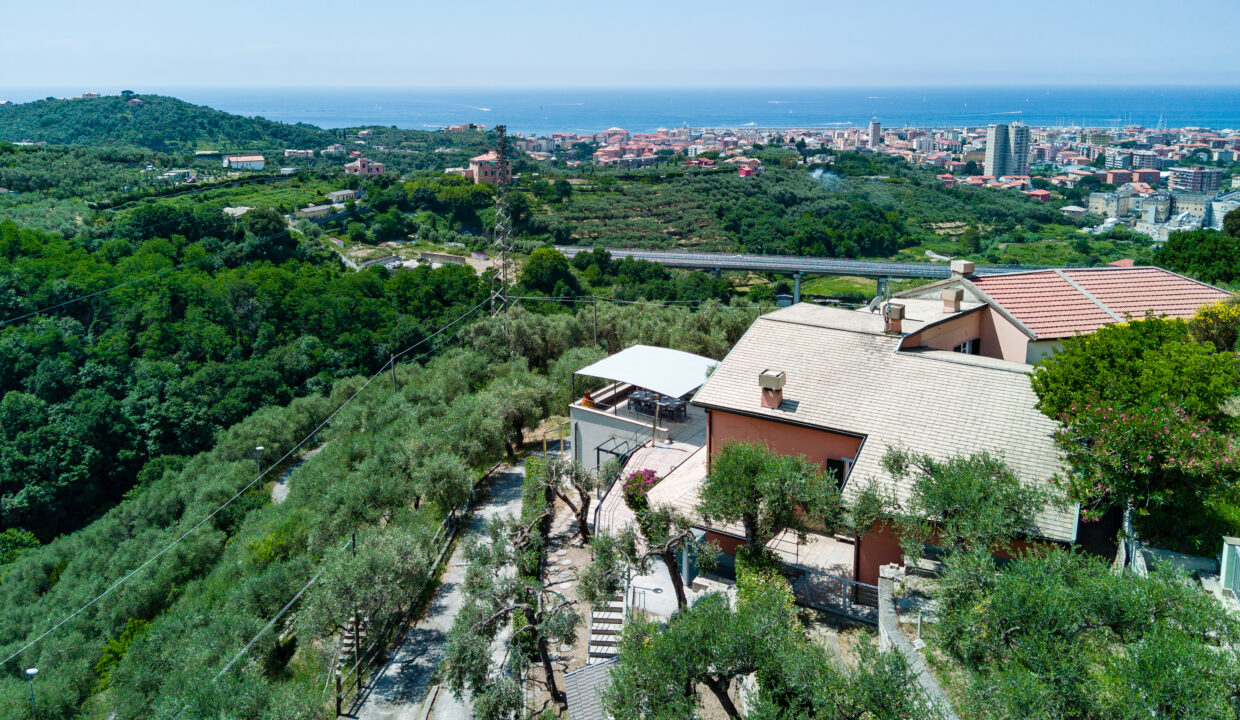 In posizione panoramica, in mezzo al verde della vegetazione ligure, tra pini marittimi e alberi…