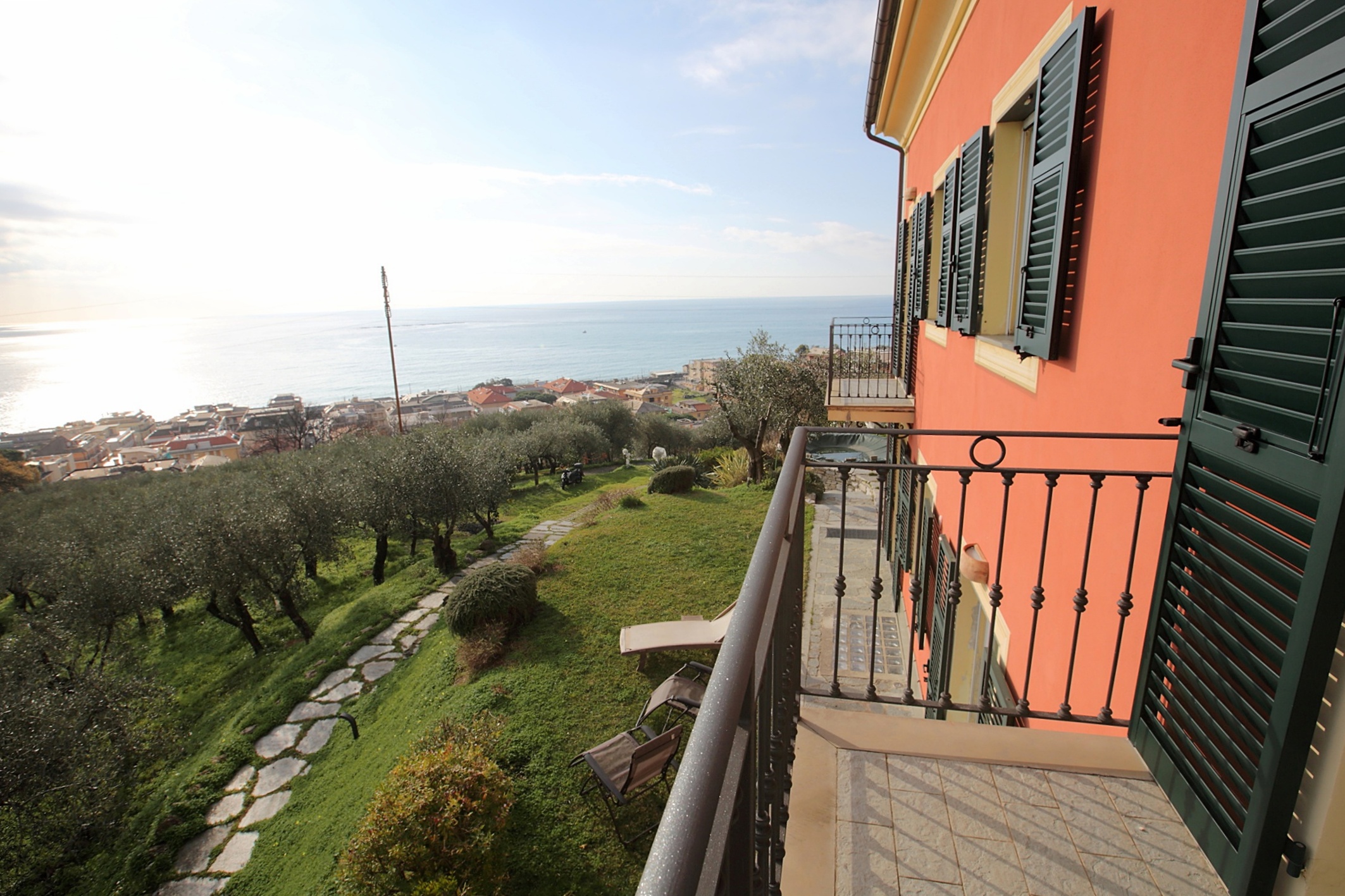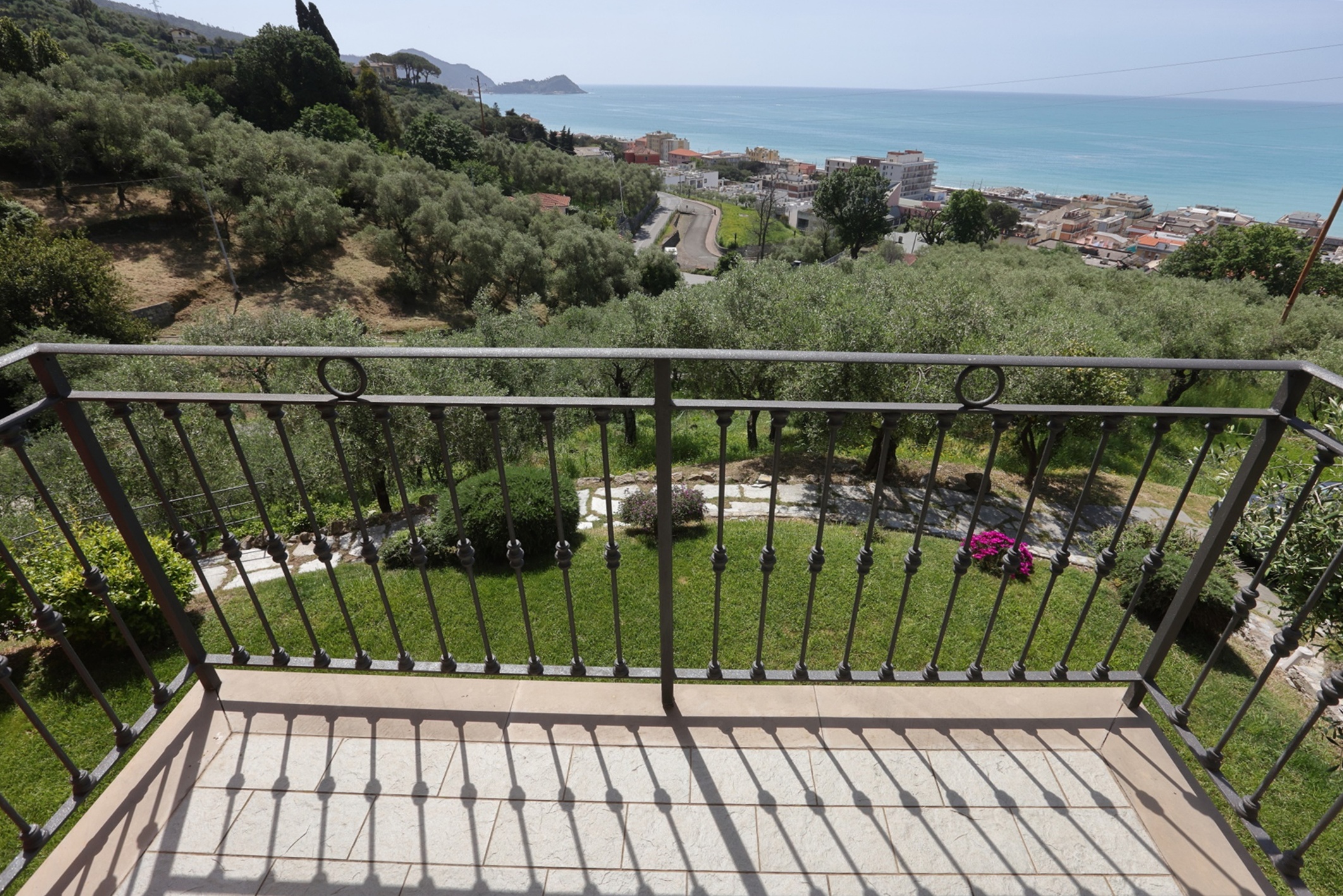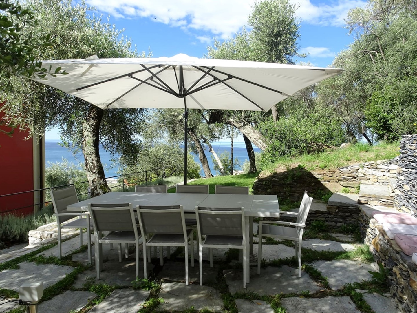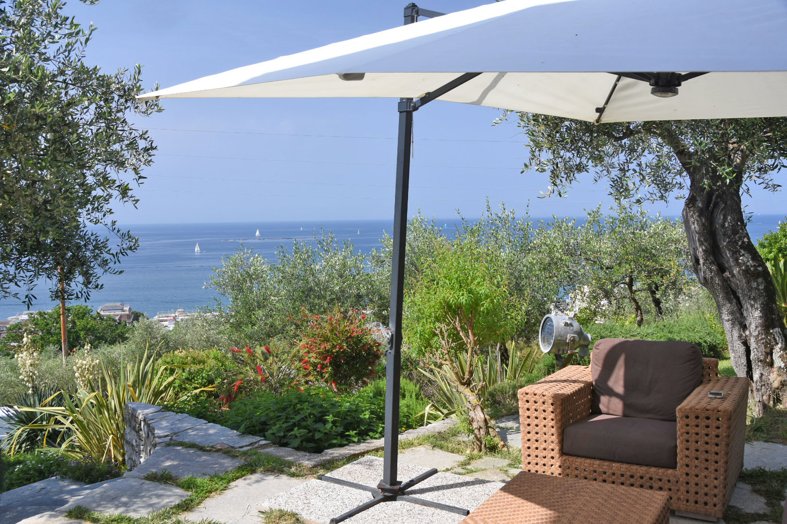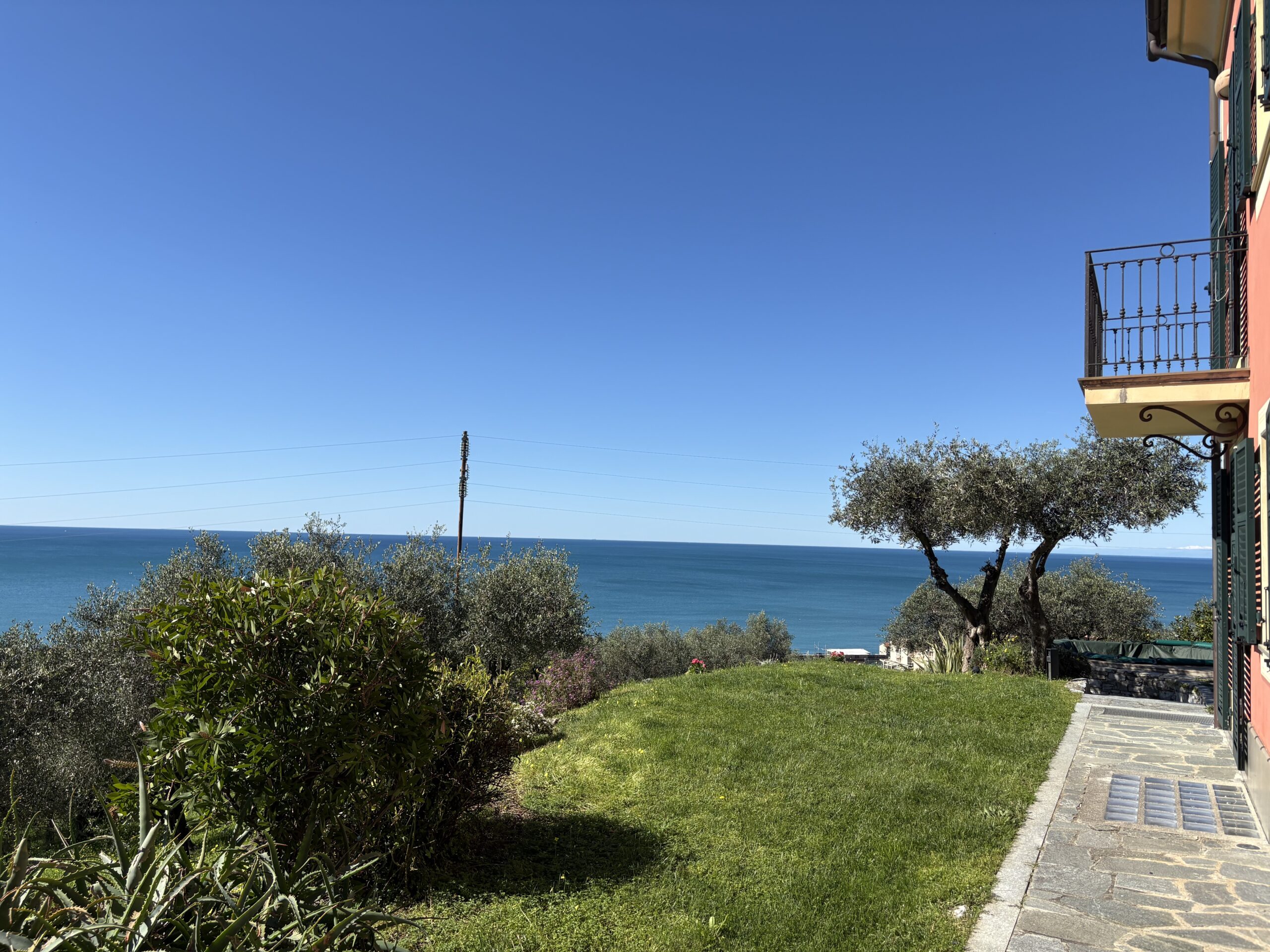 Vista mare da ogni ambiente della casa. Accesso diretto al bellissimo giardino di circa 1500 mq con zona pranzo e zona relax tra gli ulivi con bellissima vista mare.