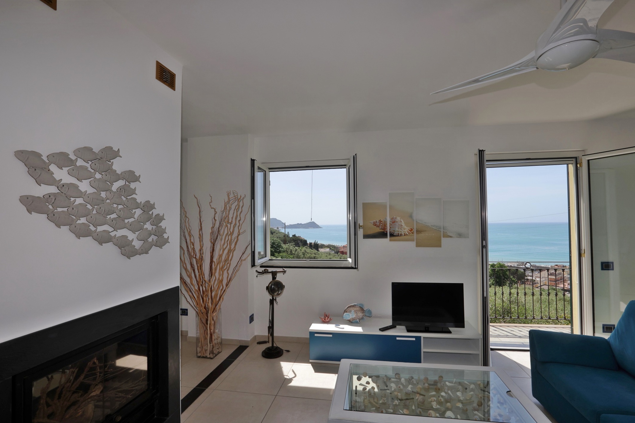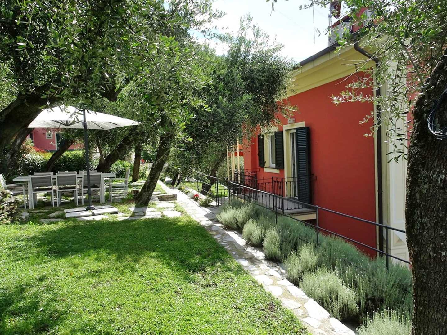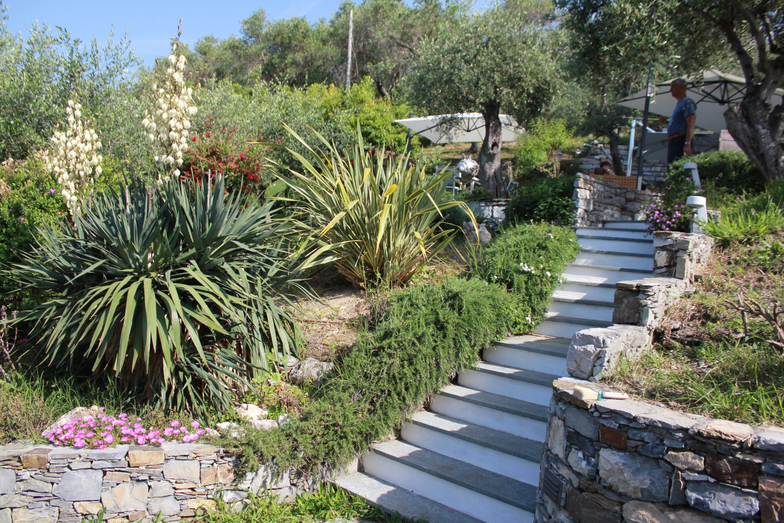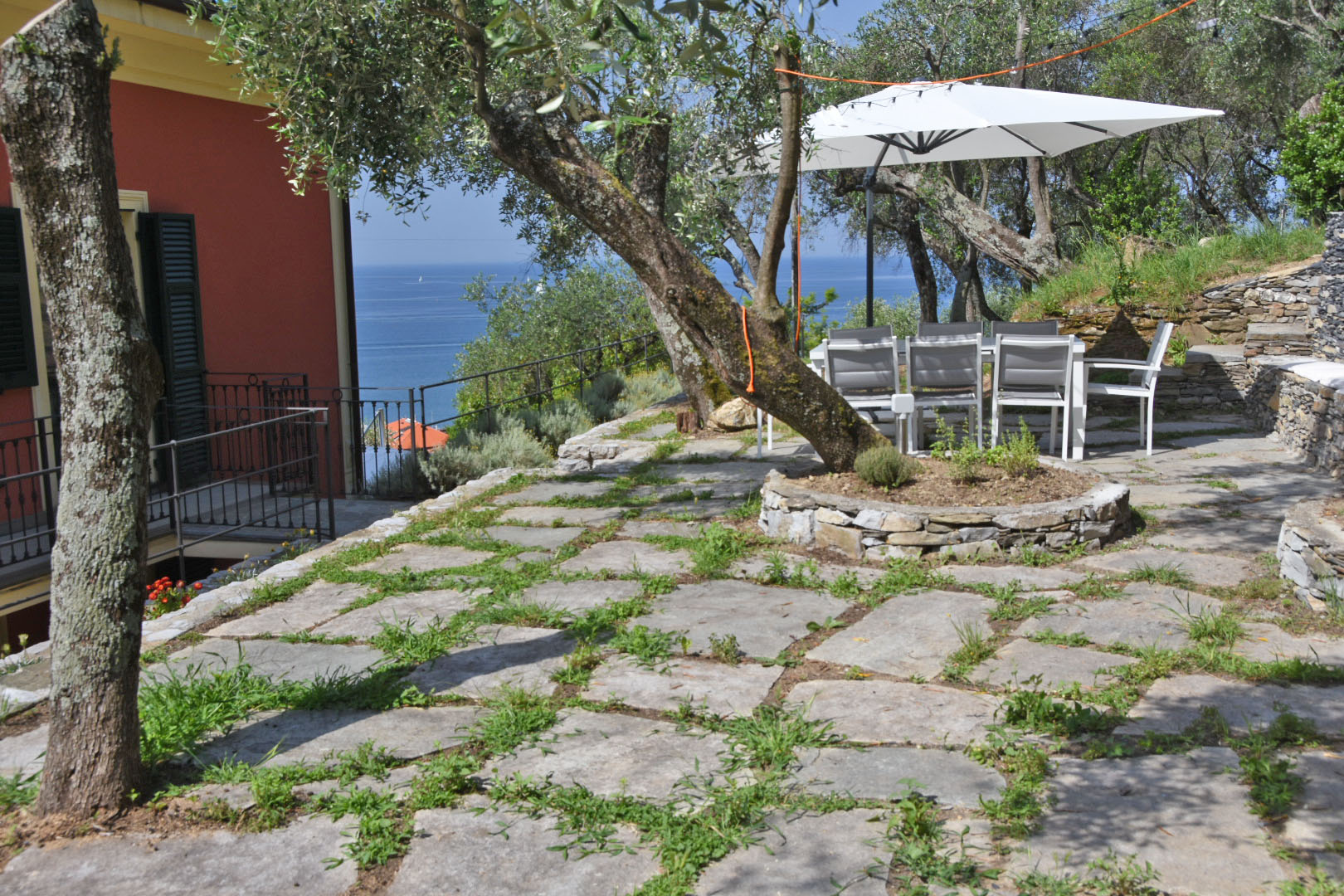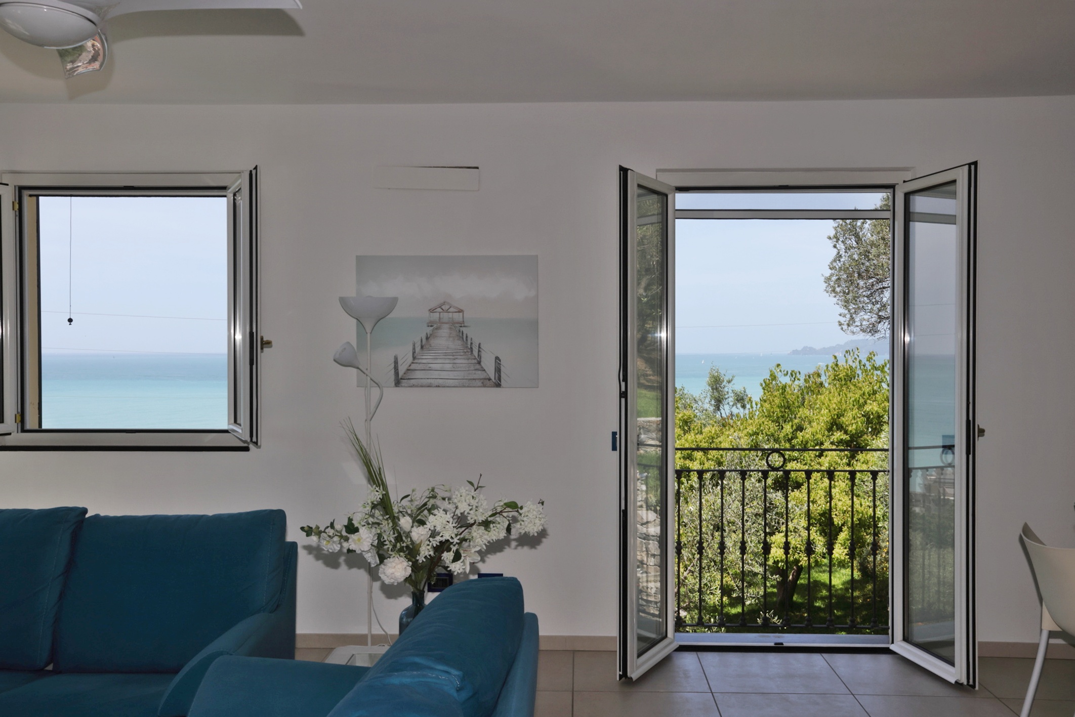 Vista mare da ogni ambiente della casa. Accesso diretto al bellissimo giardino di circa 1500 mq con zona pranzo e zona relax tra gli ulivi con bellissima vista mare.