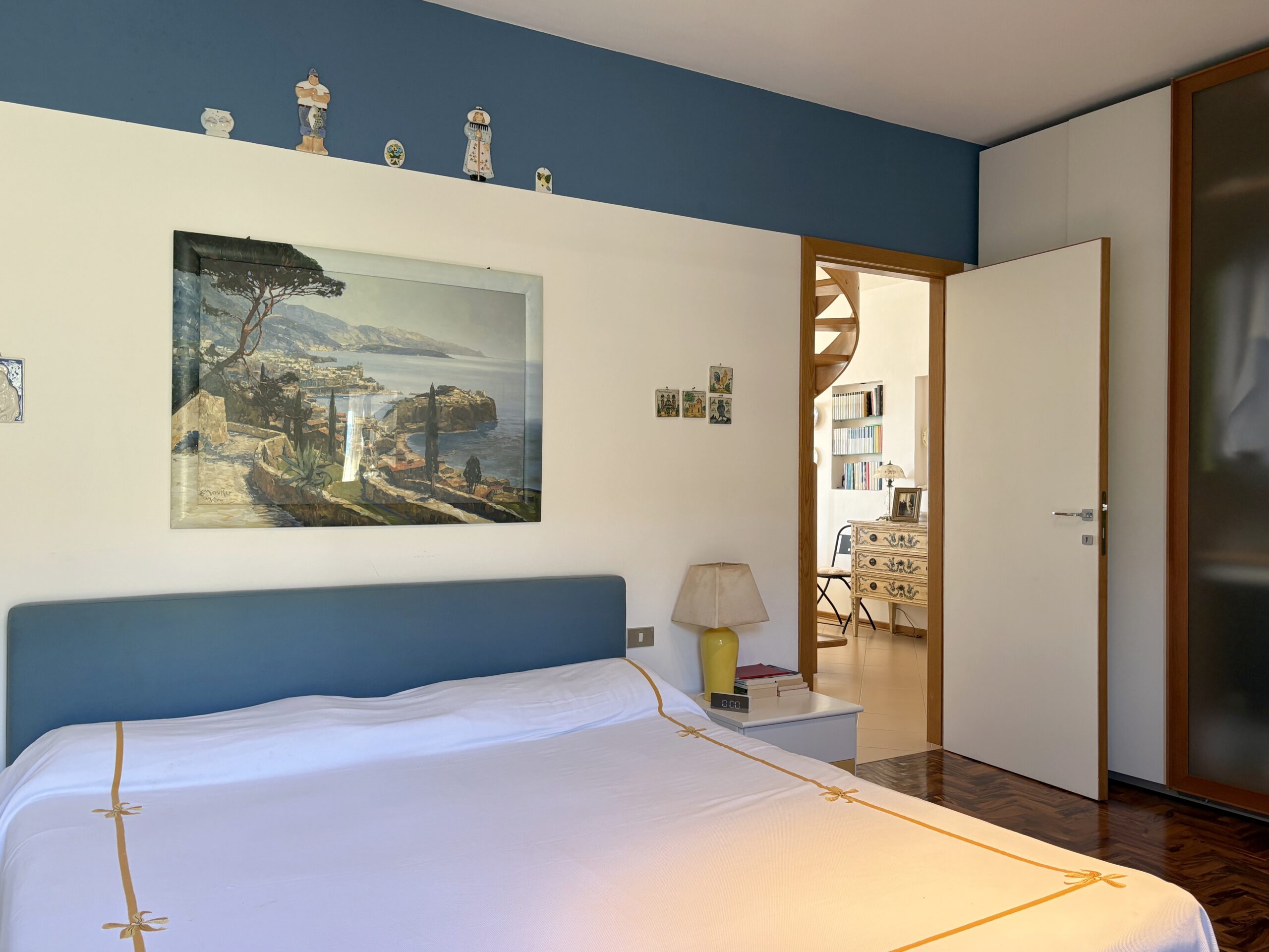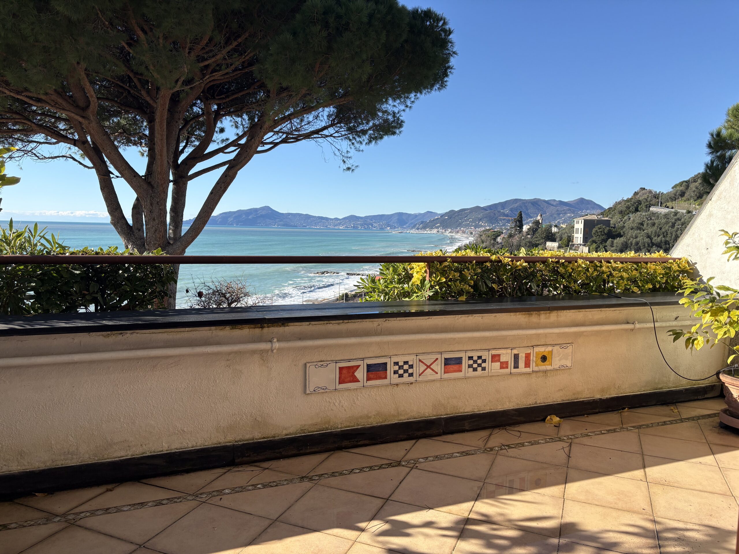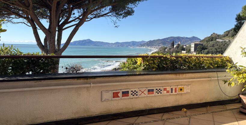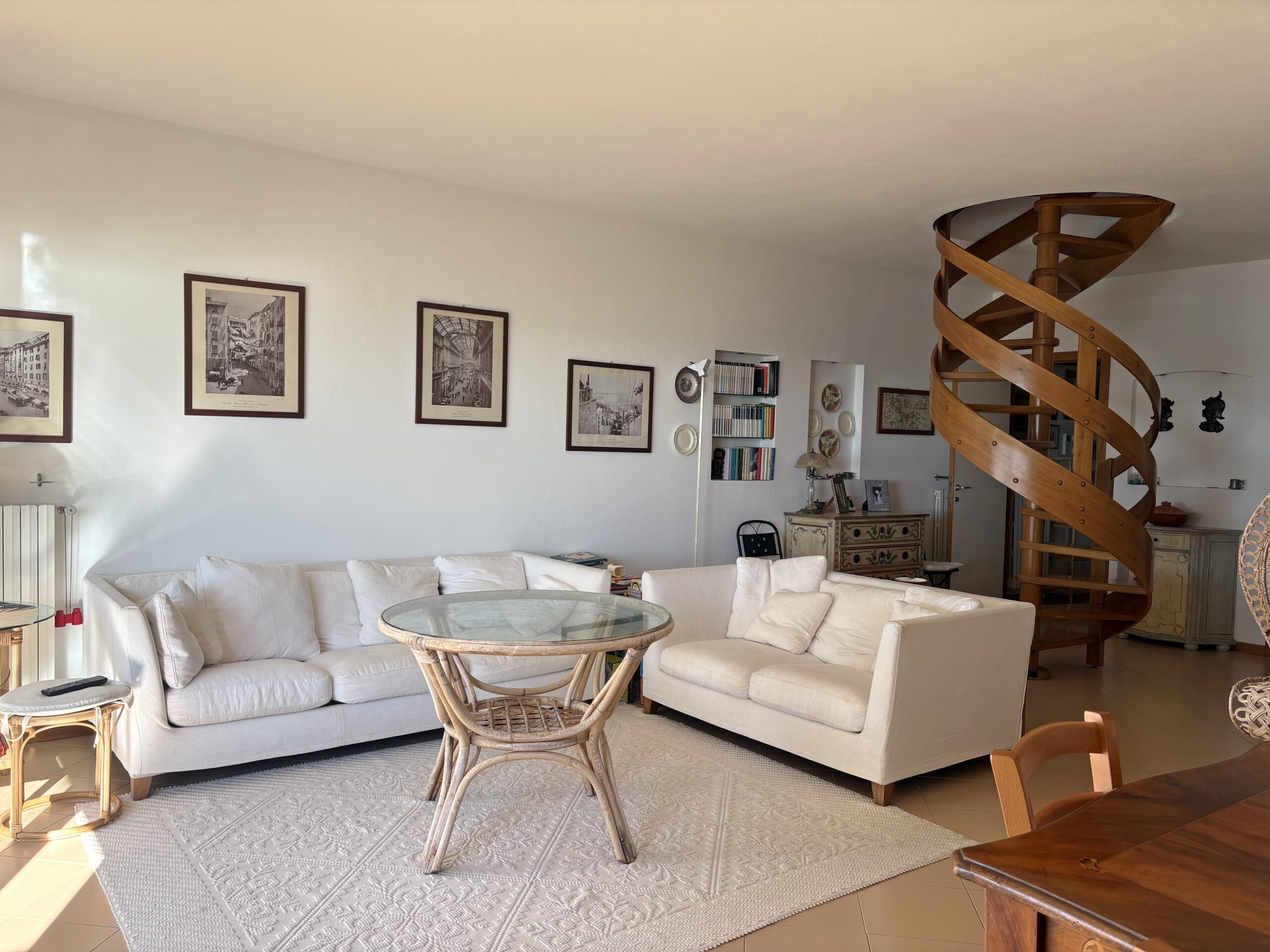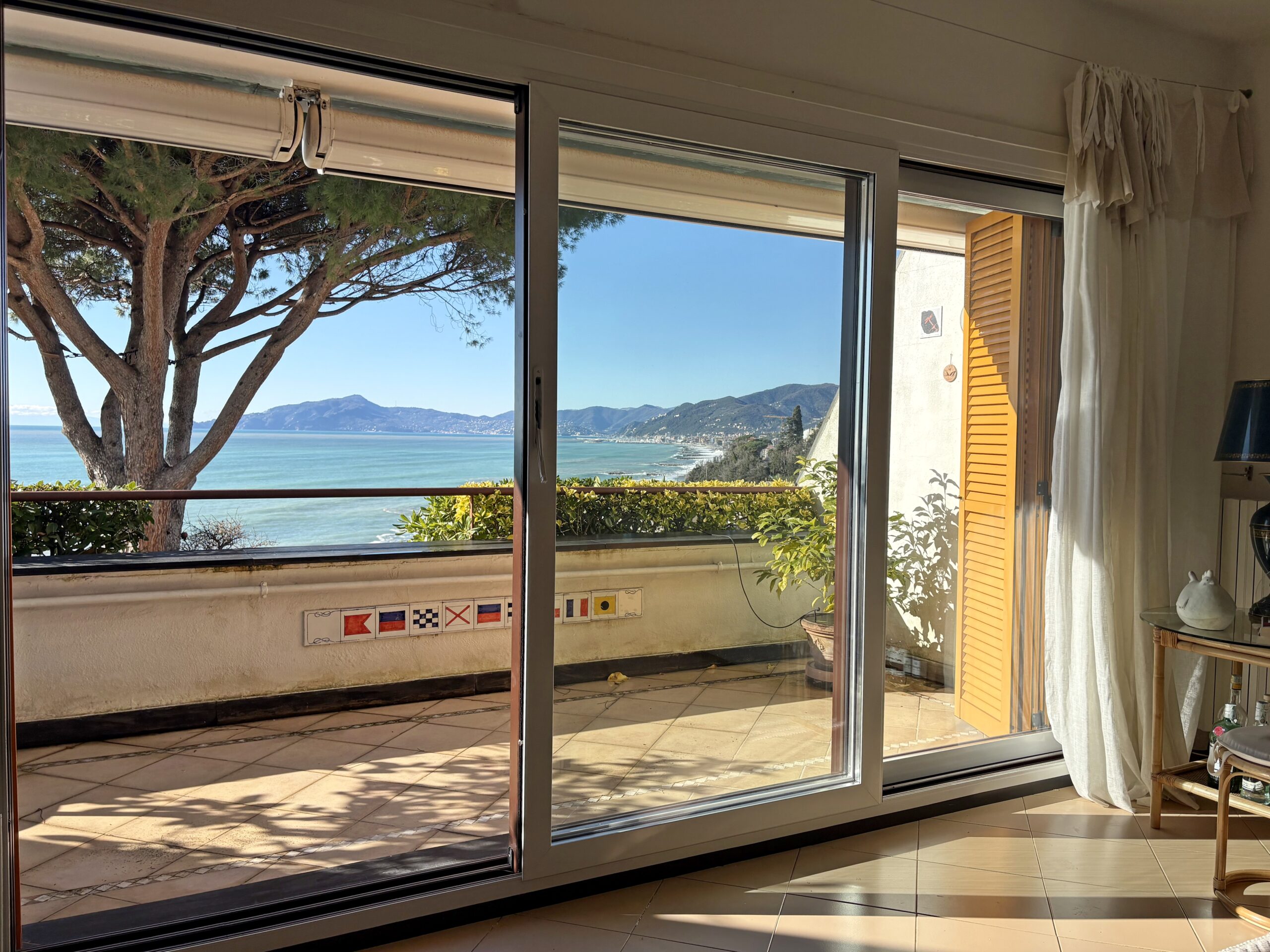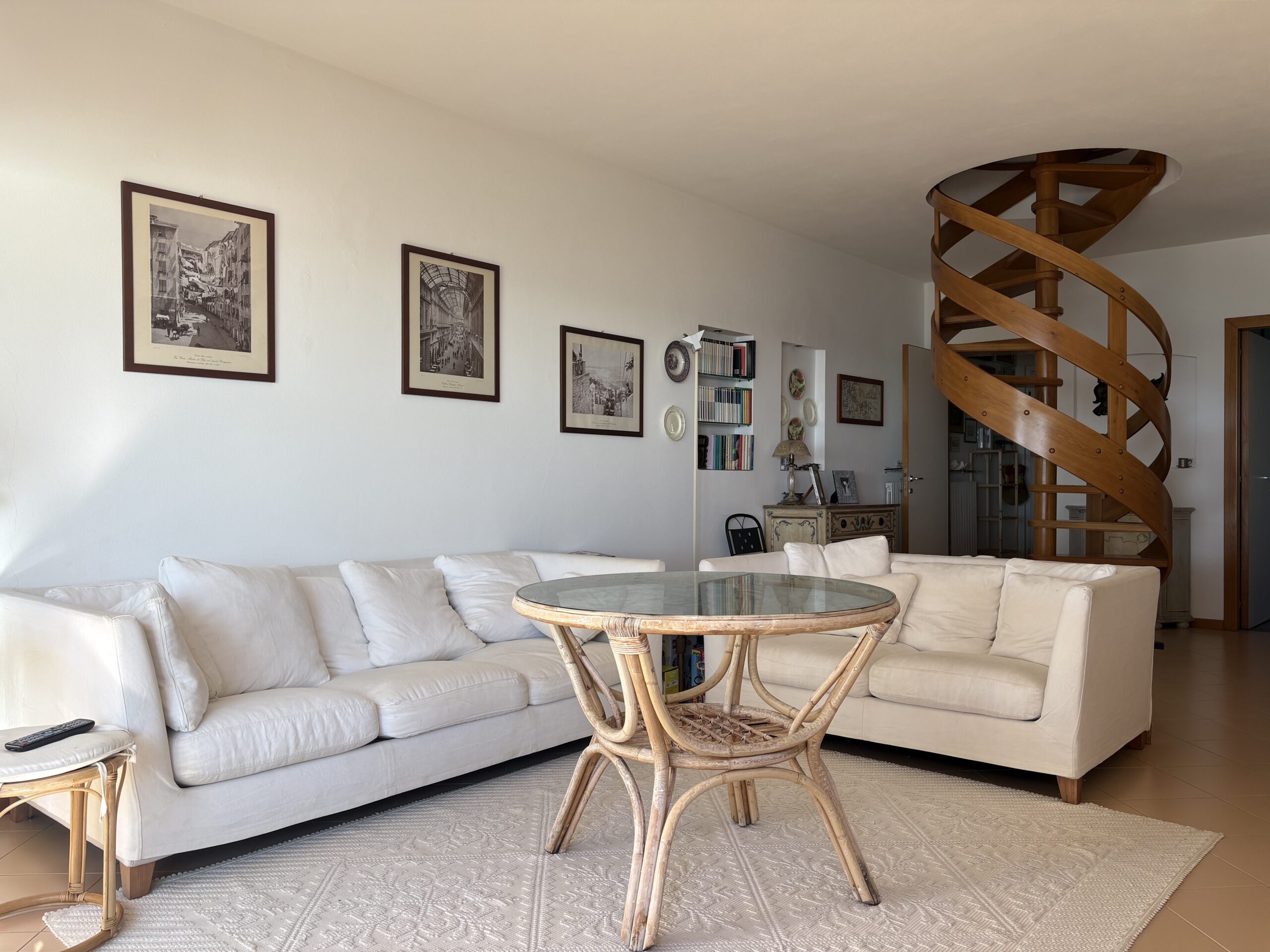 Attico su 2 livelli con ampie terrazze e vista mare frontale.