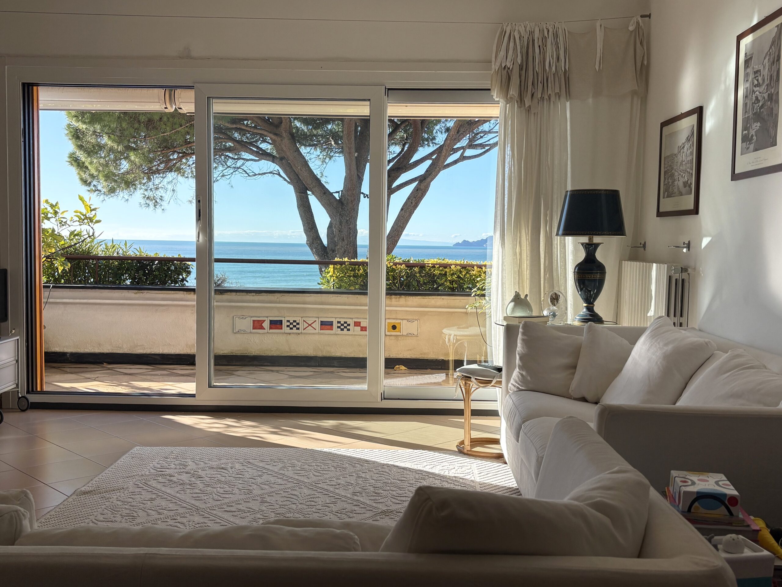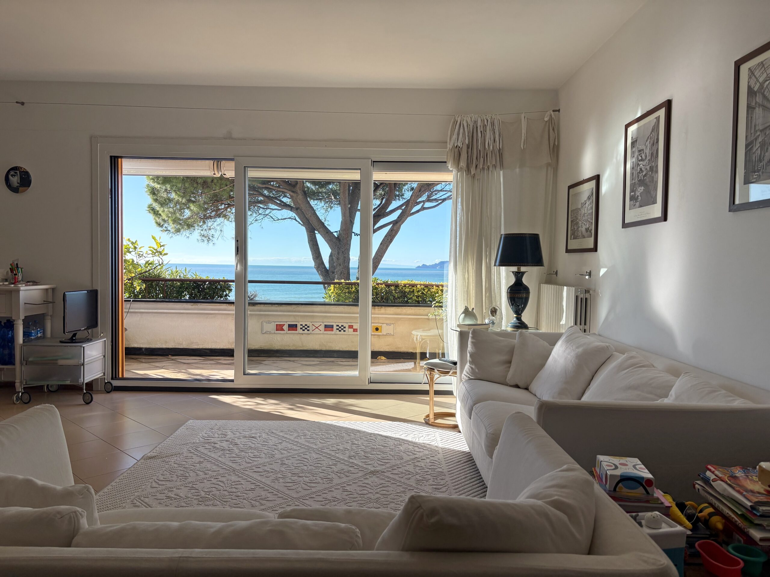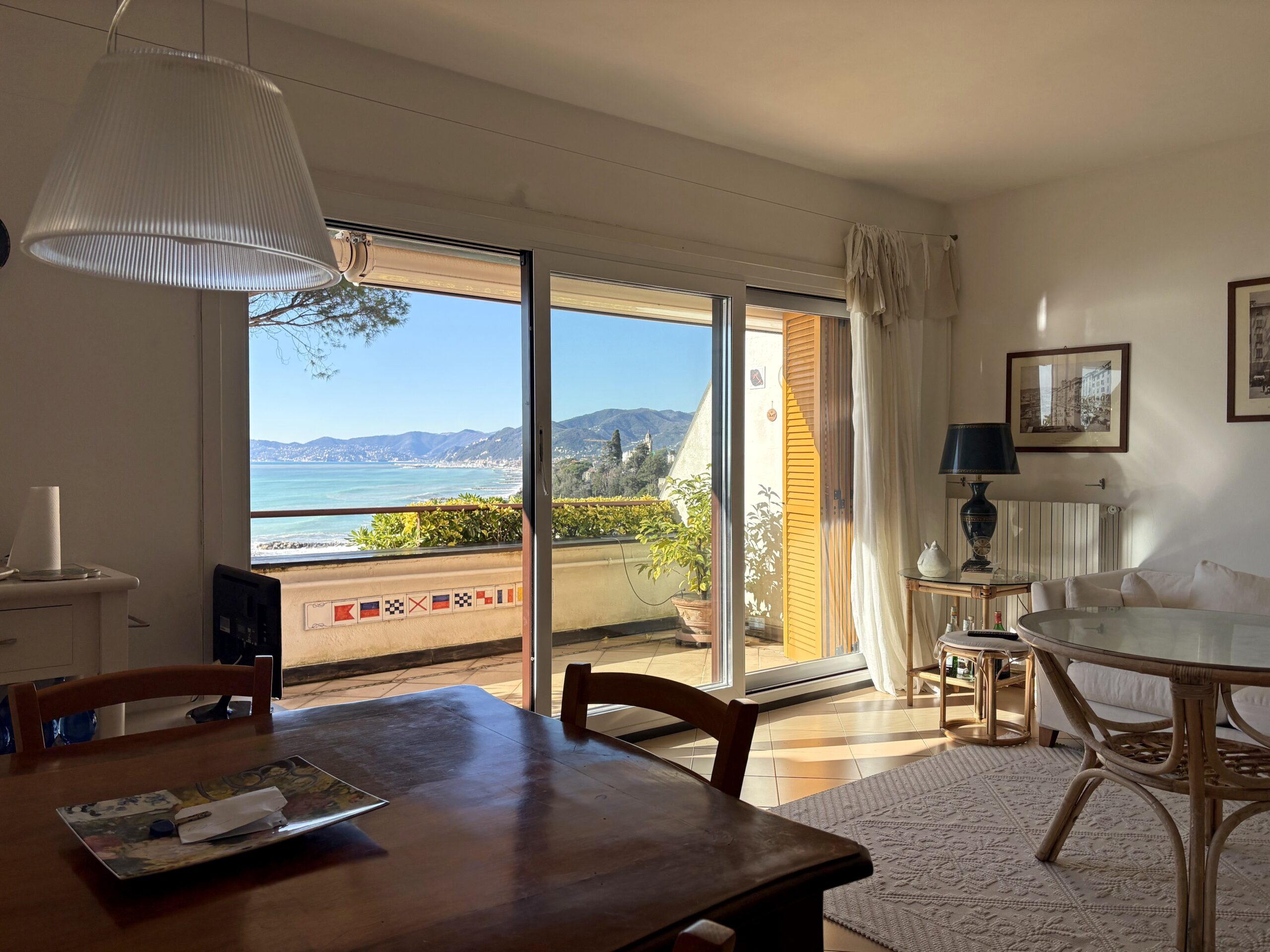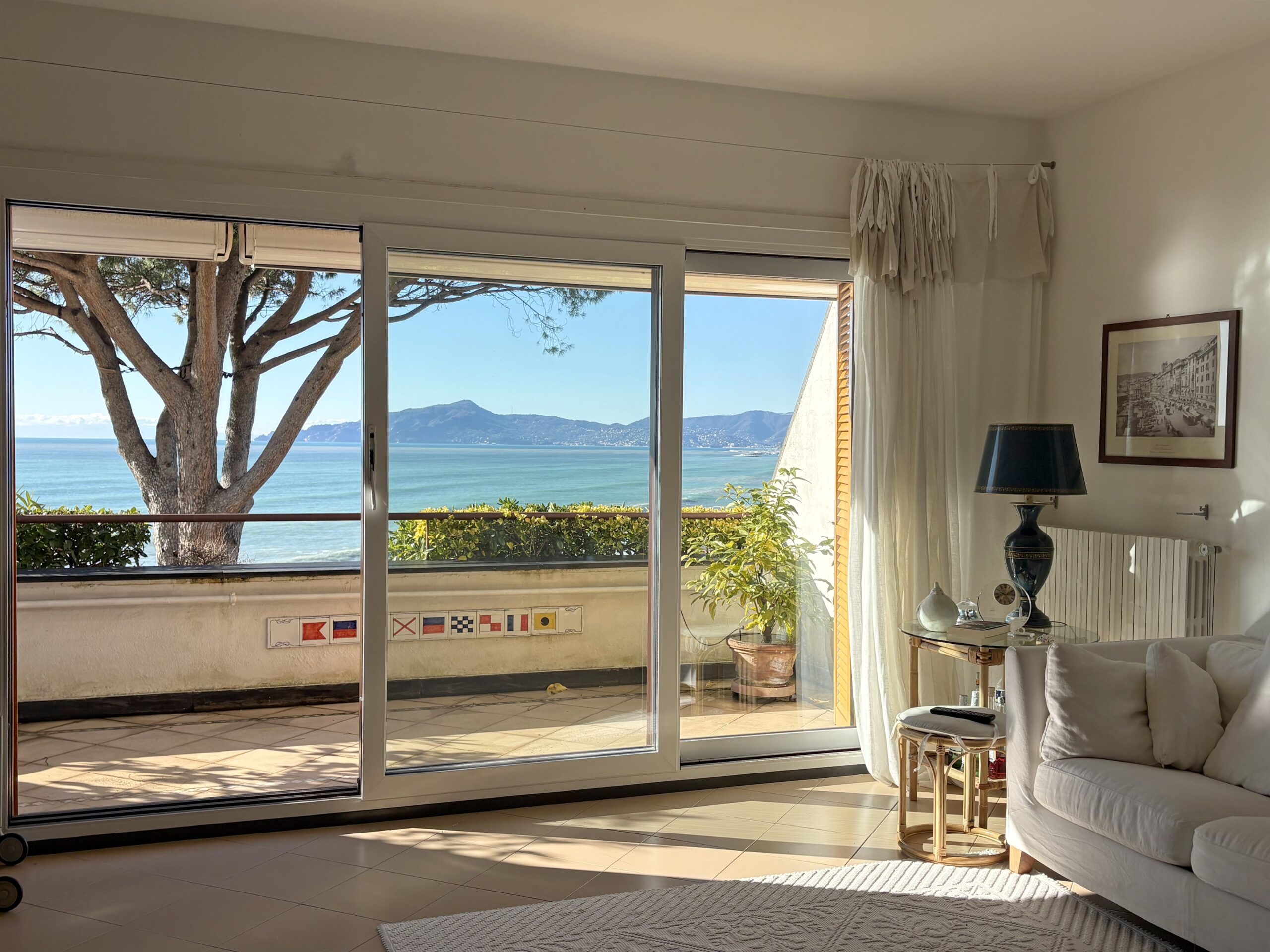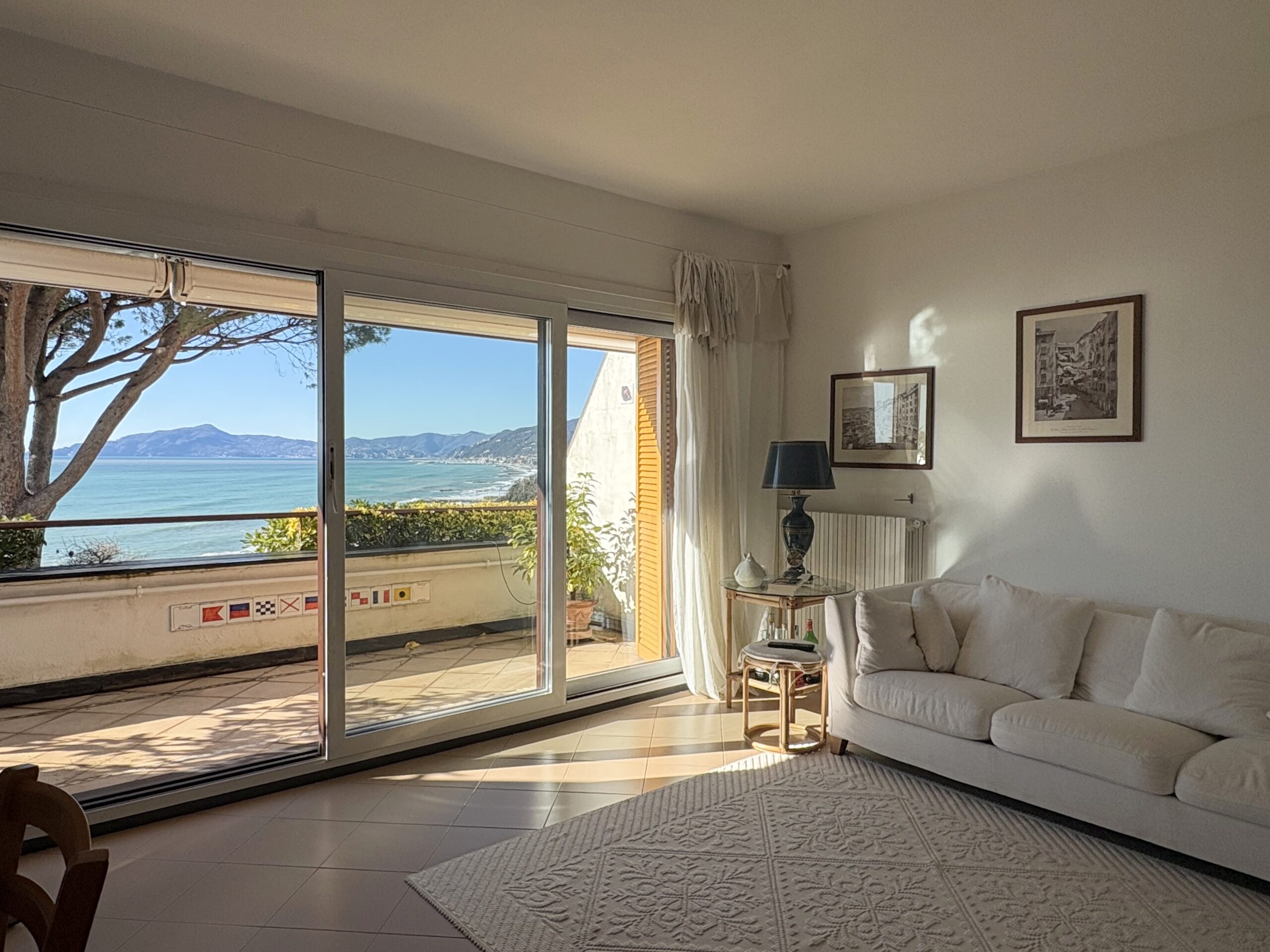 Attico su 2 livelli con ampie terrazze e vista mare frontale.