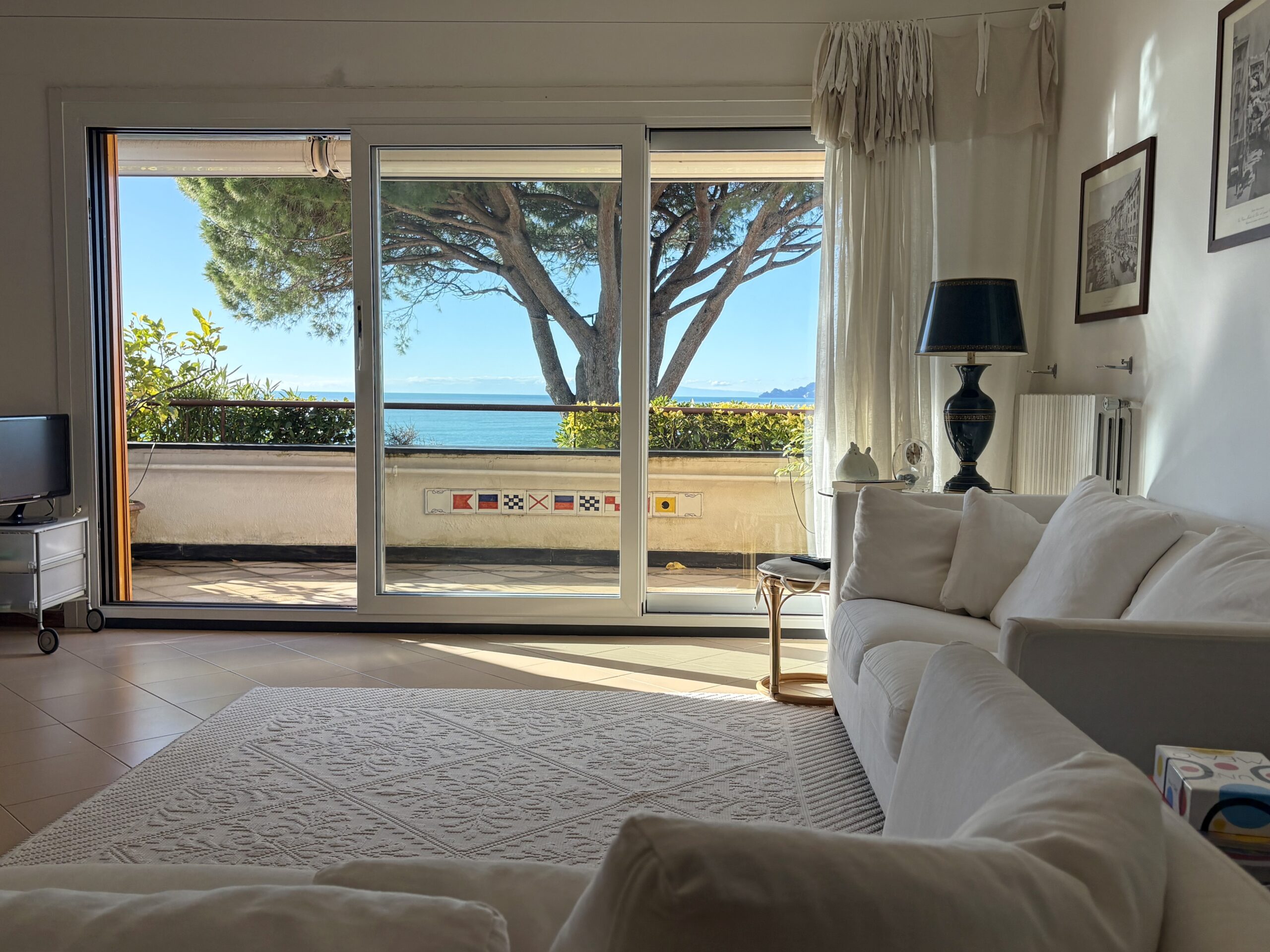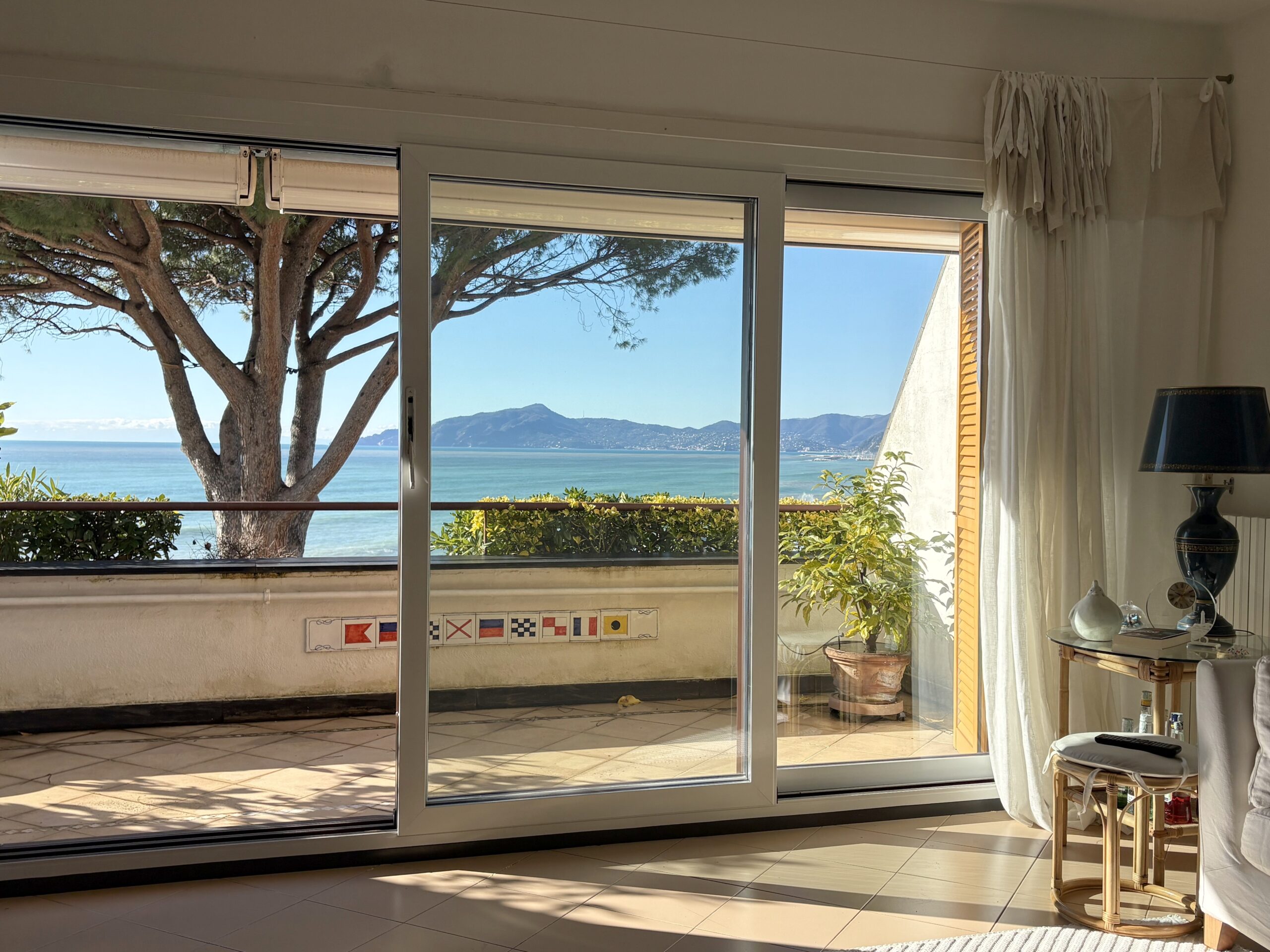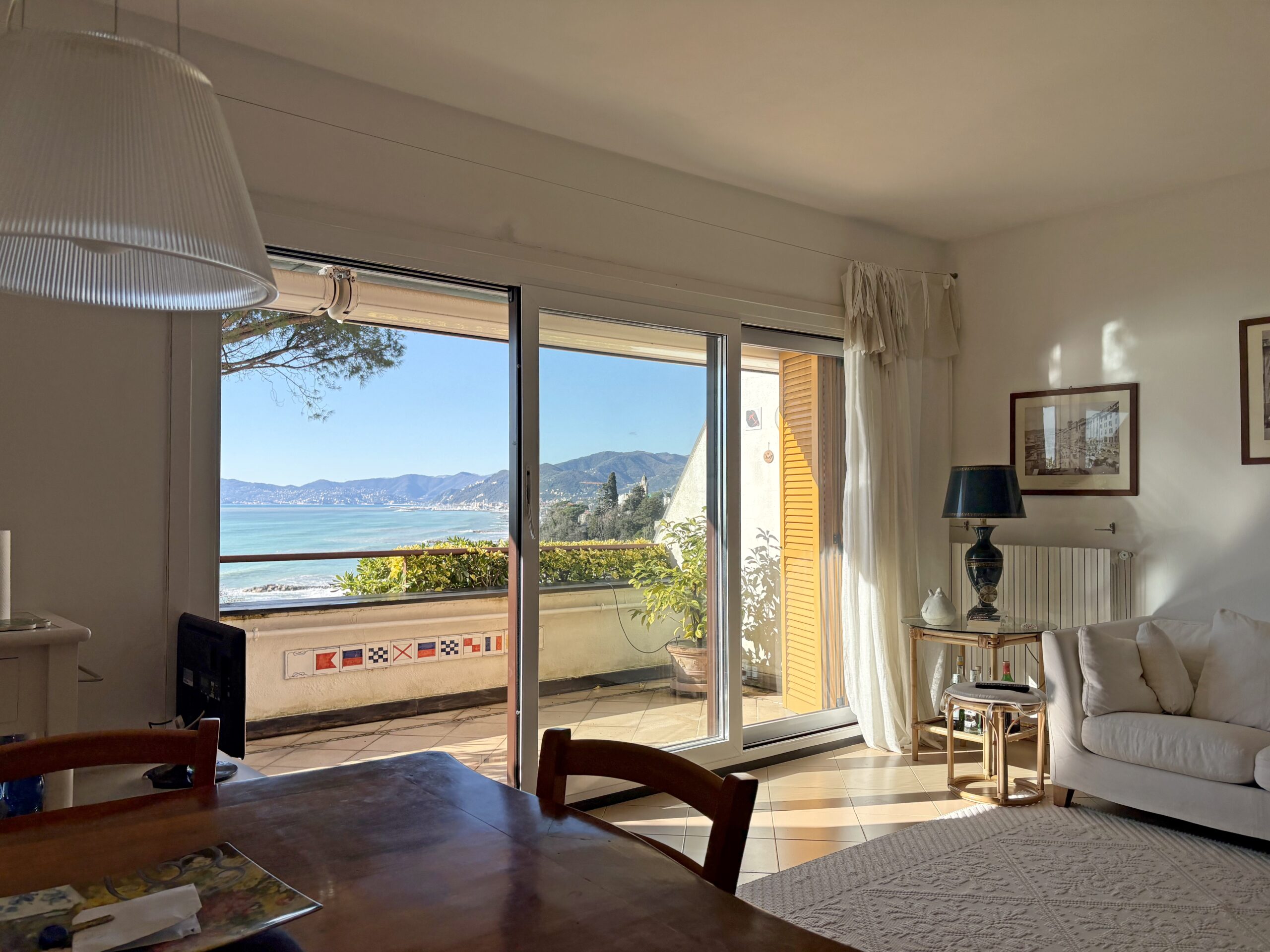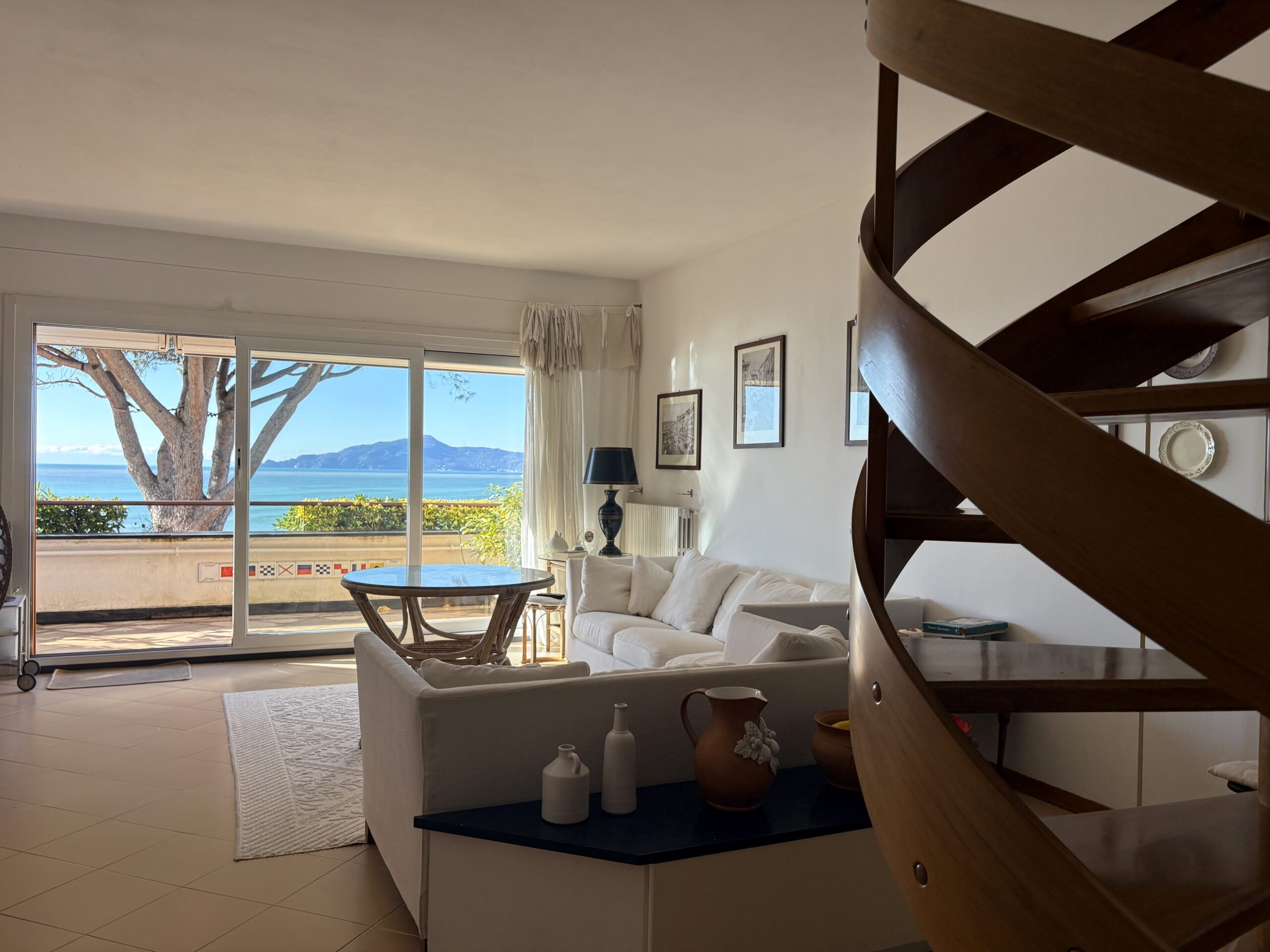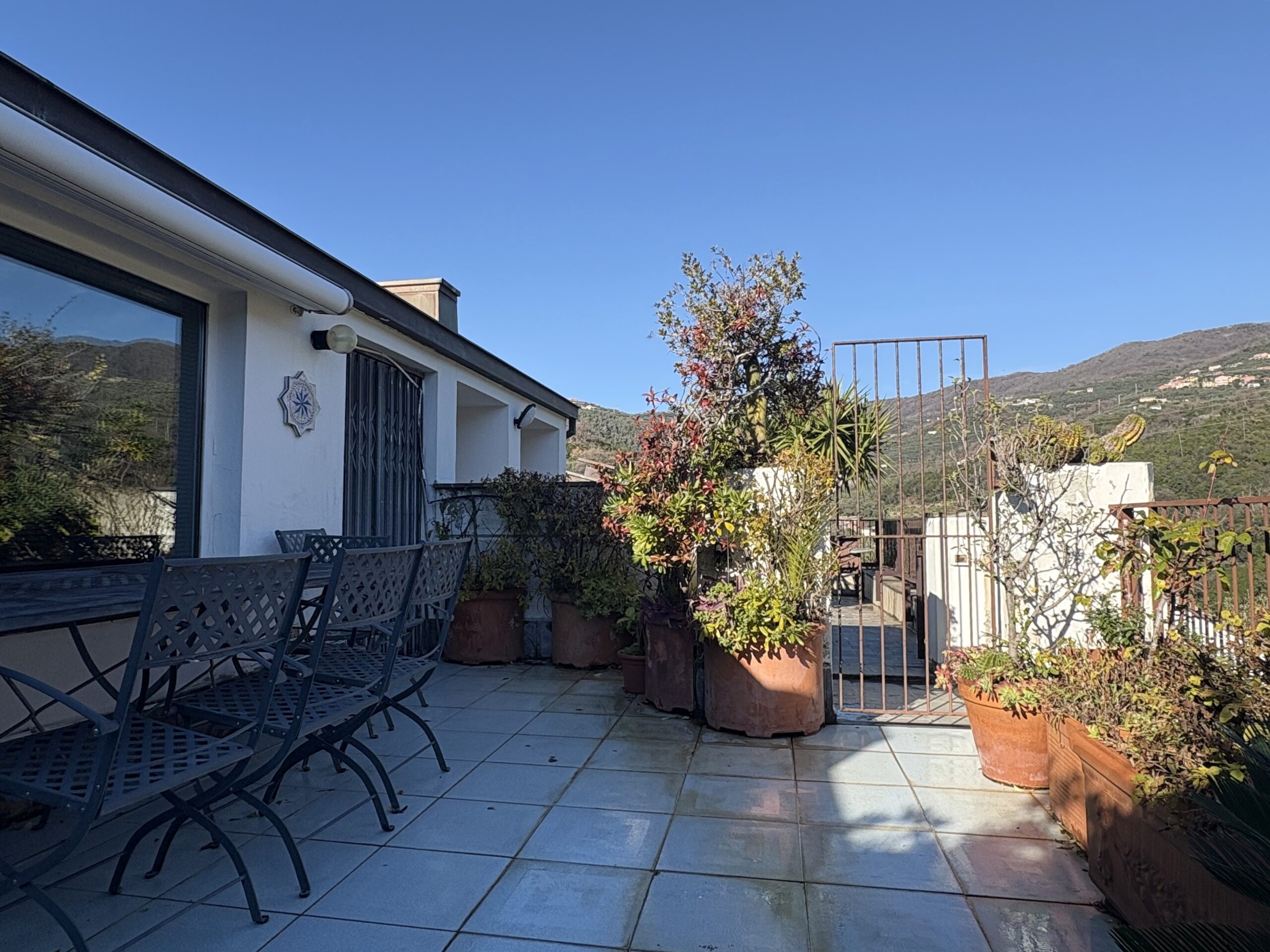 Attico su 2 livelli con ampie terrazze e vista mare frontale.