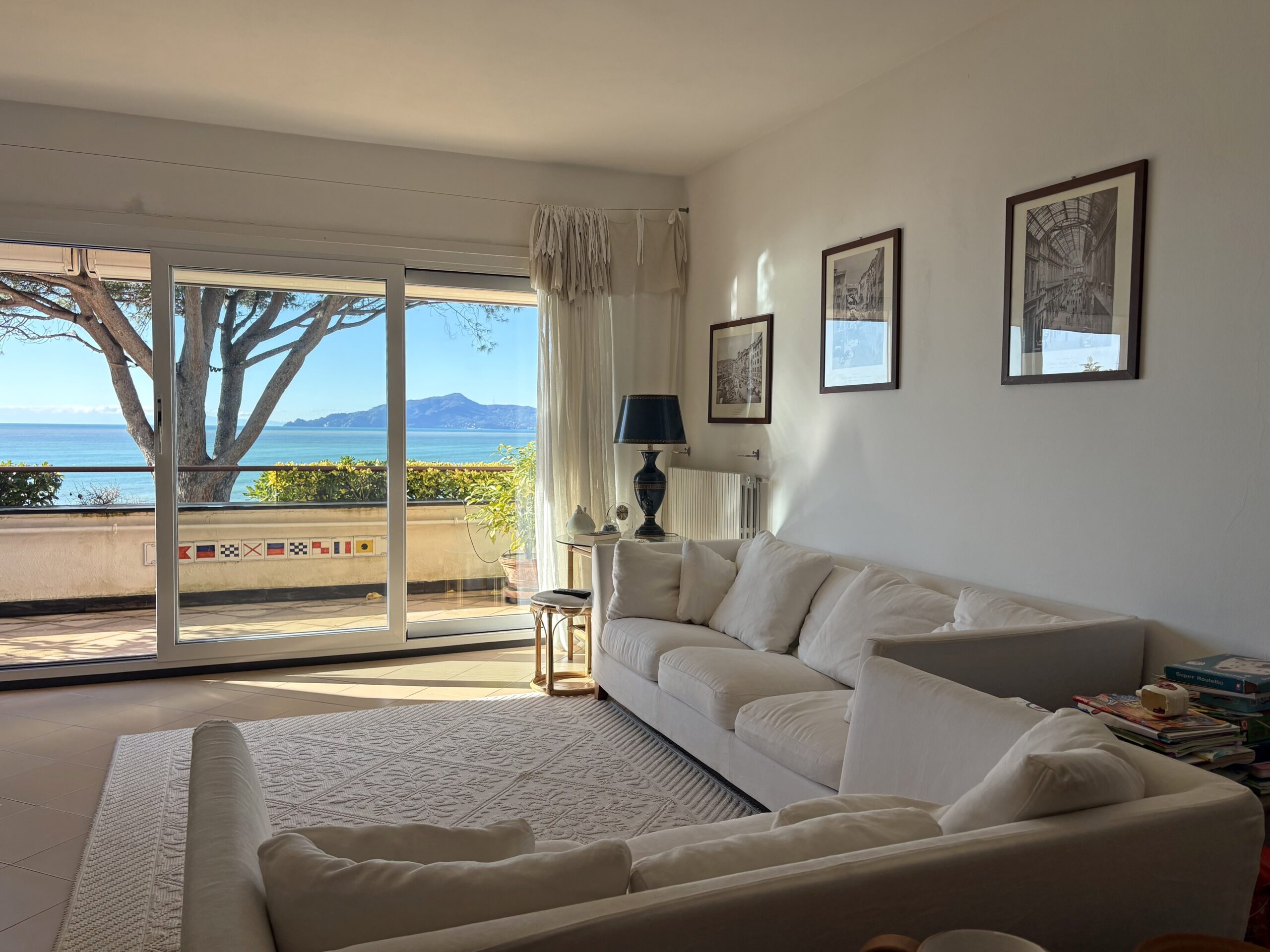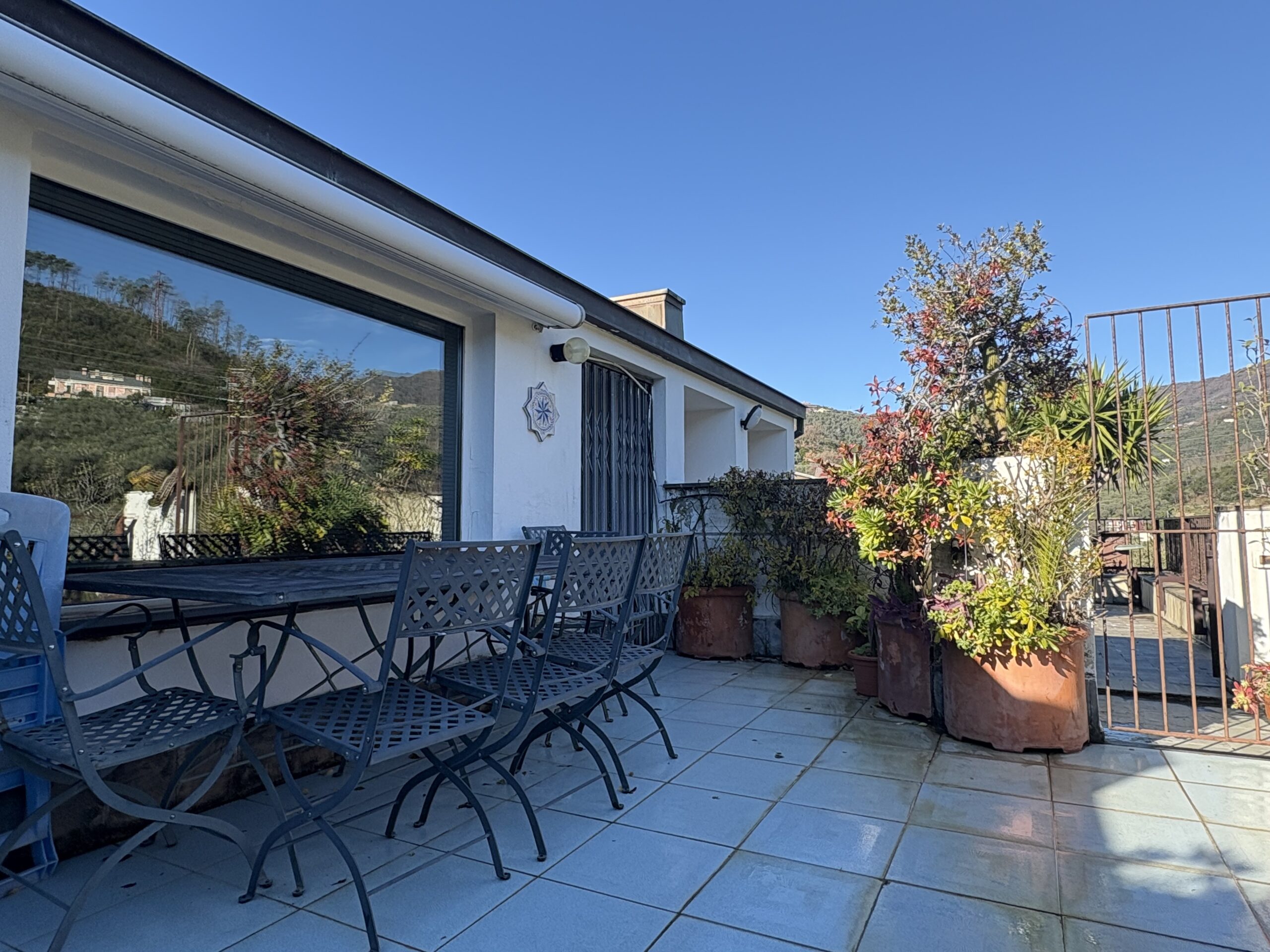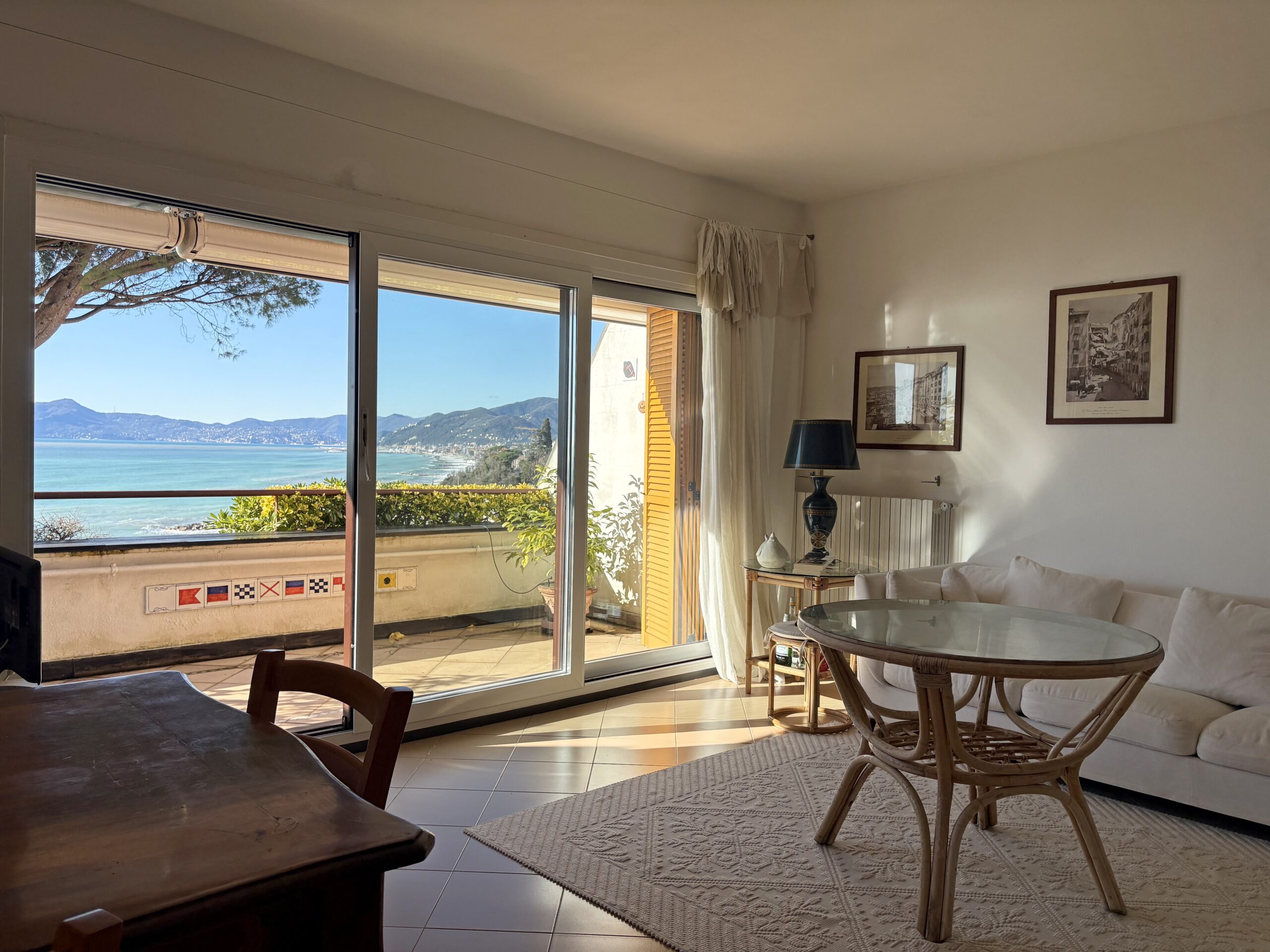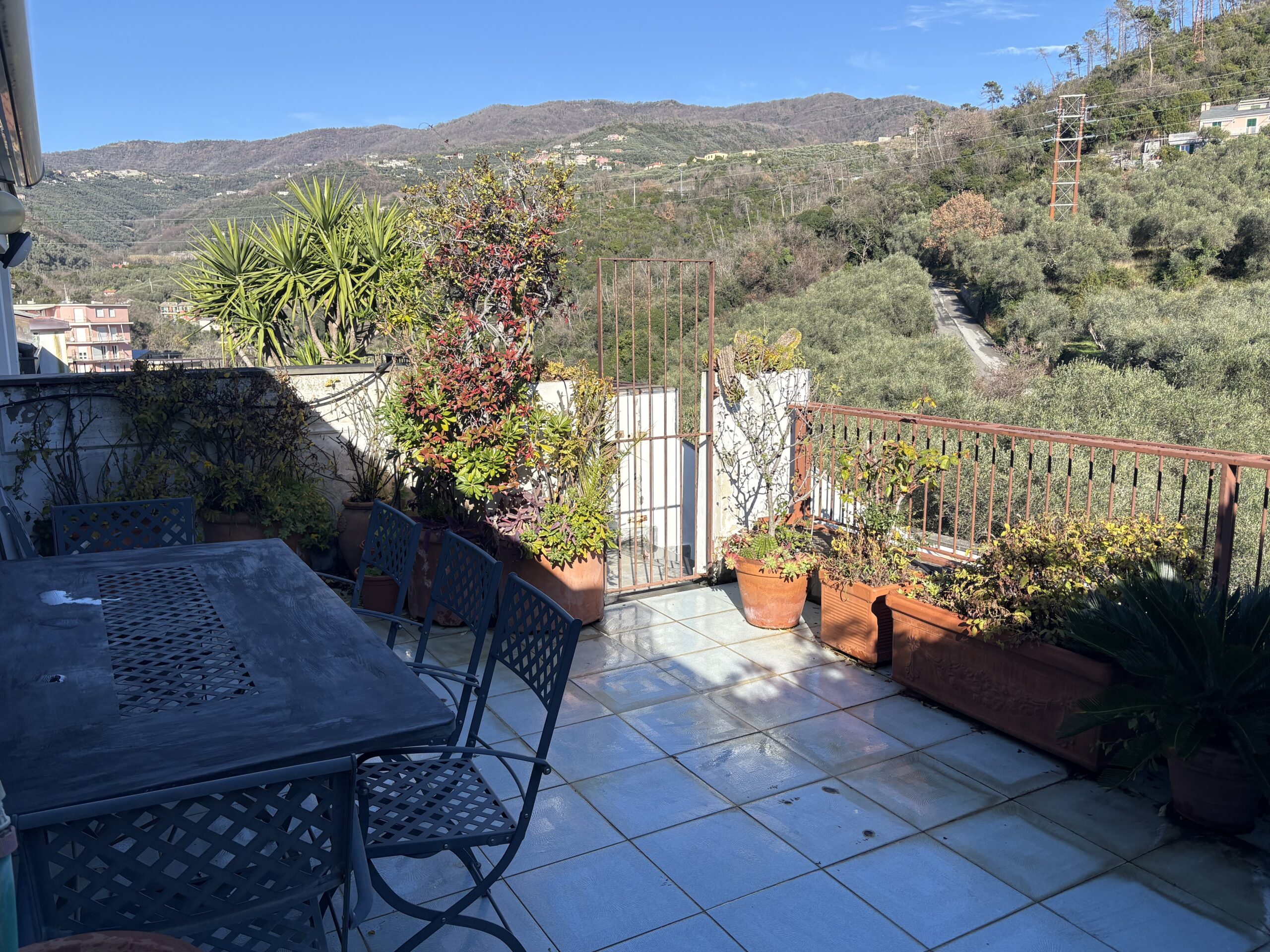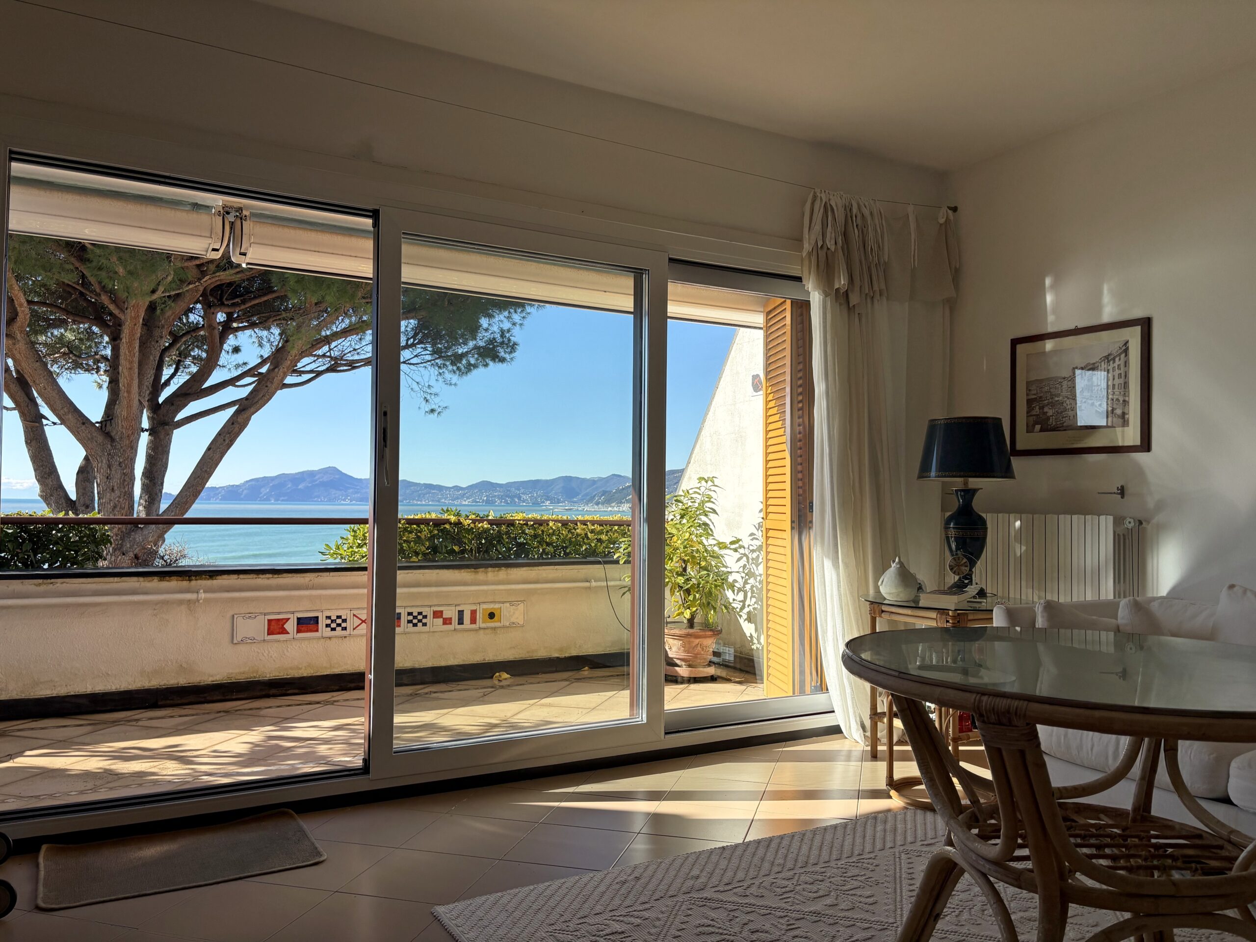 Attico su 2 livelli con ampie terrazze e vista mare frontale.
