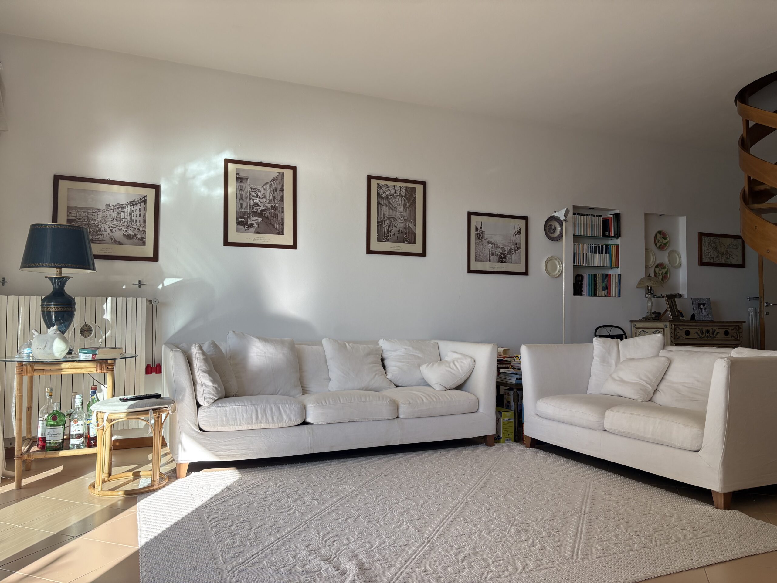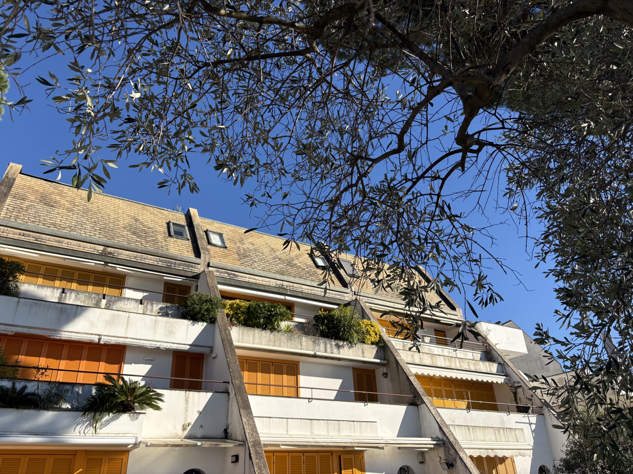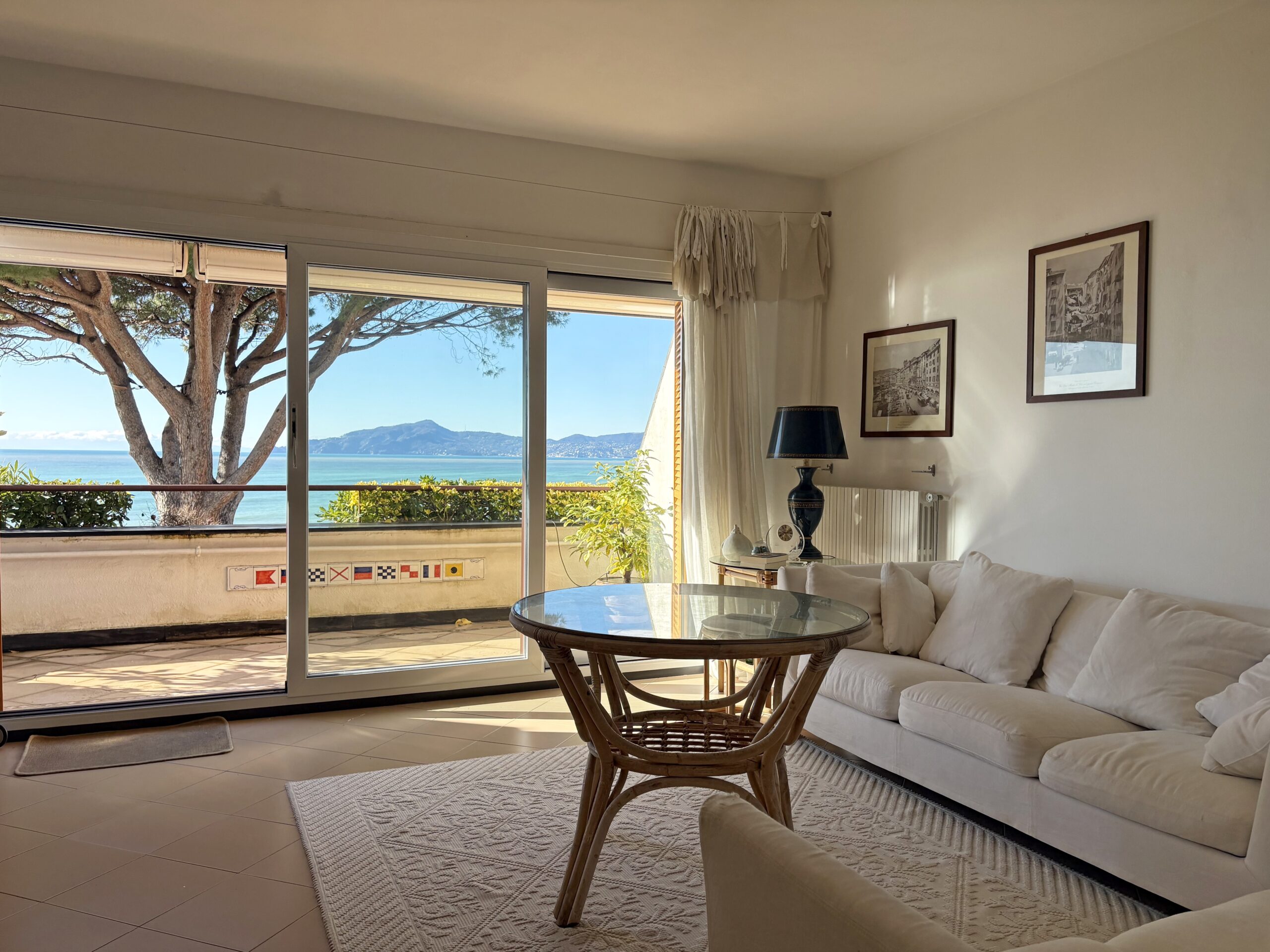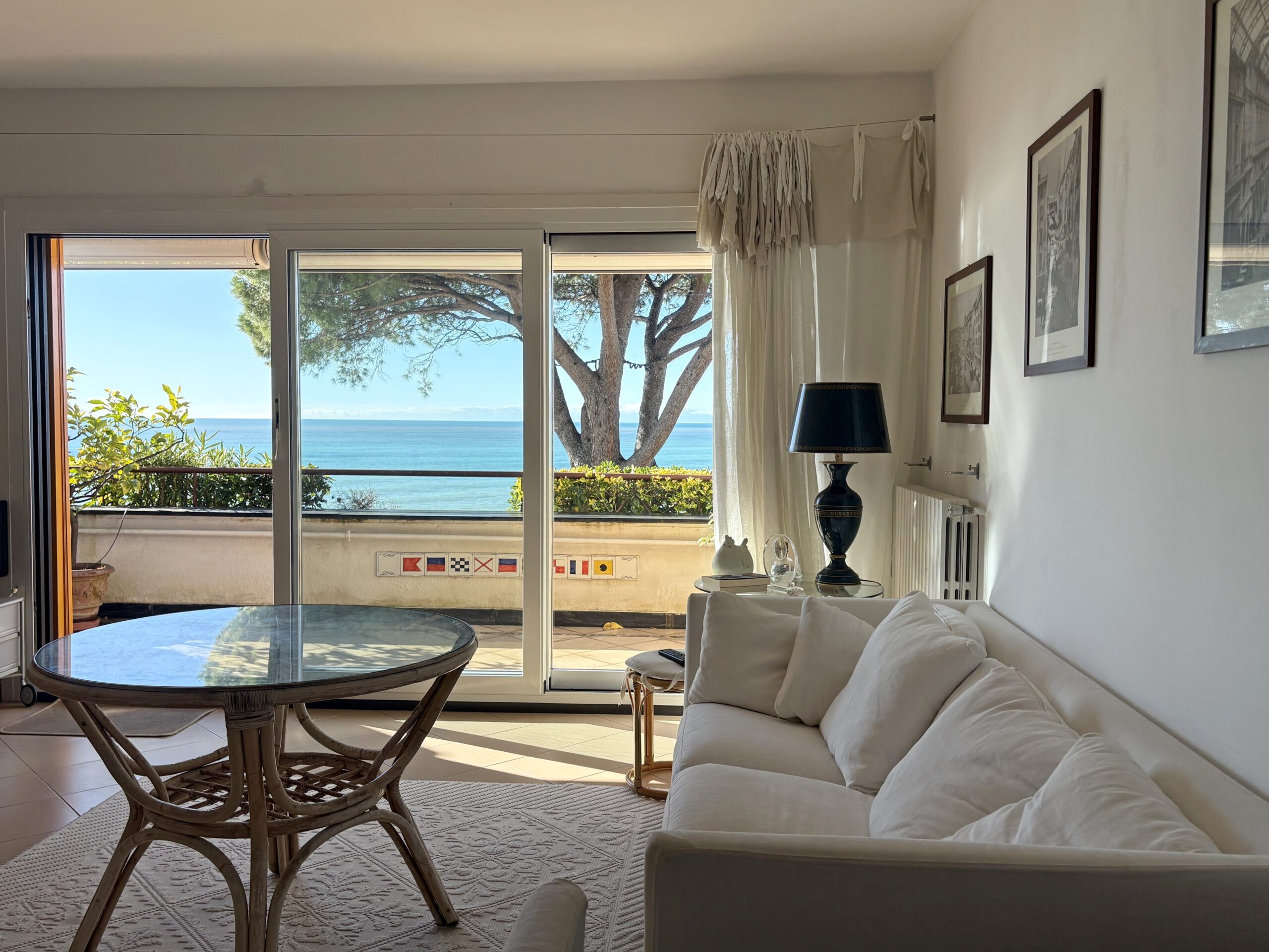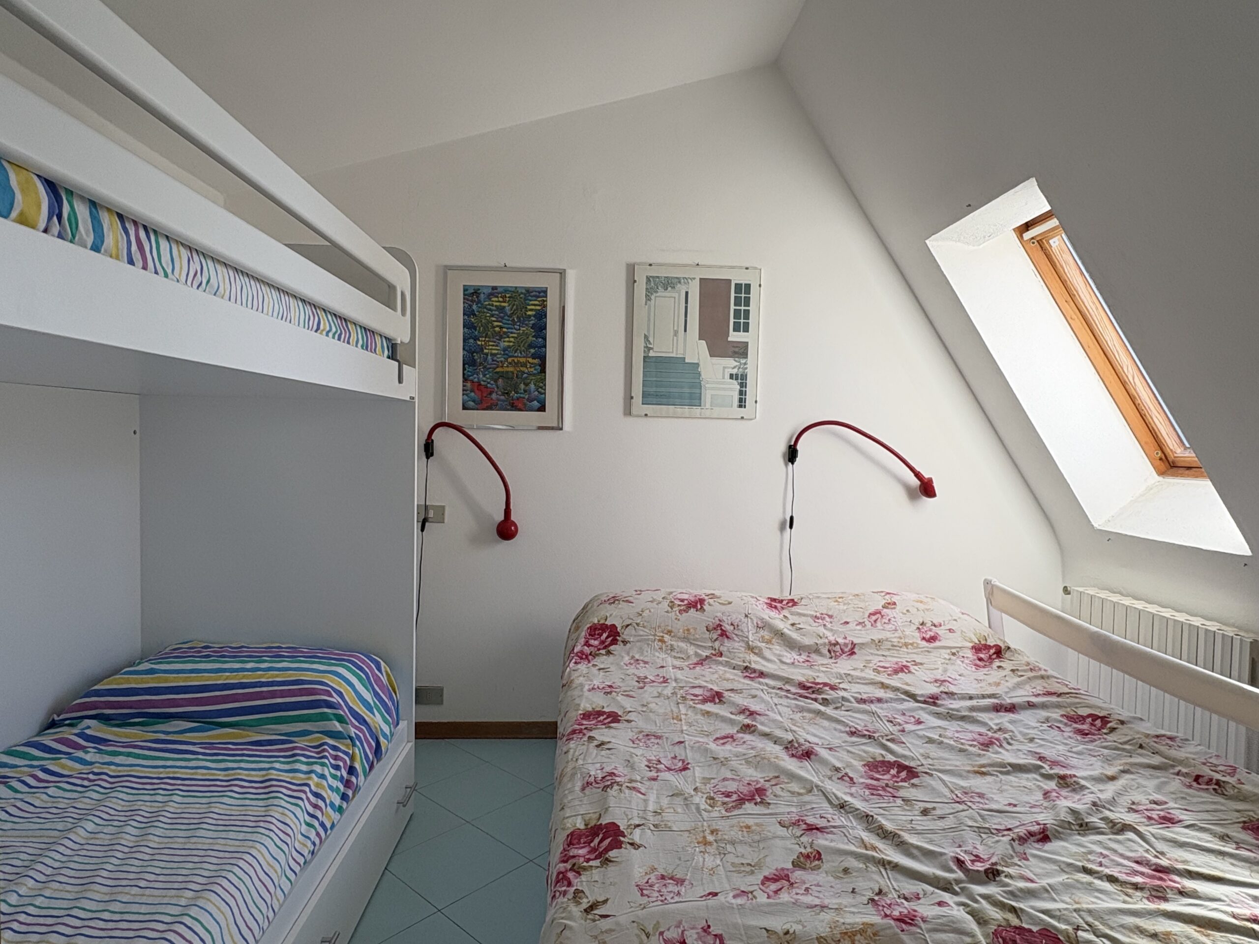 Attico su 2 livelli con ampie terrazze e vista mare frontale.