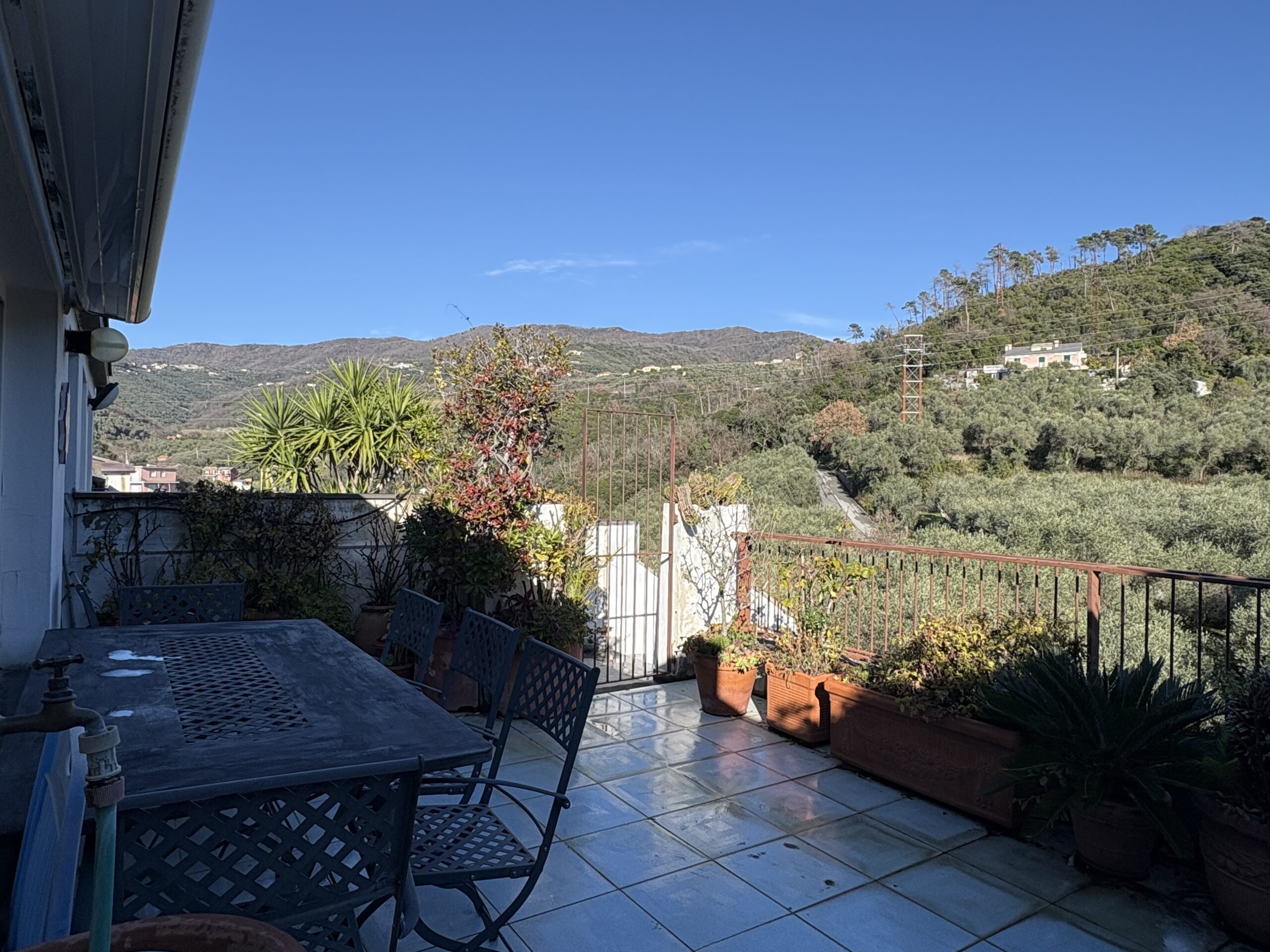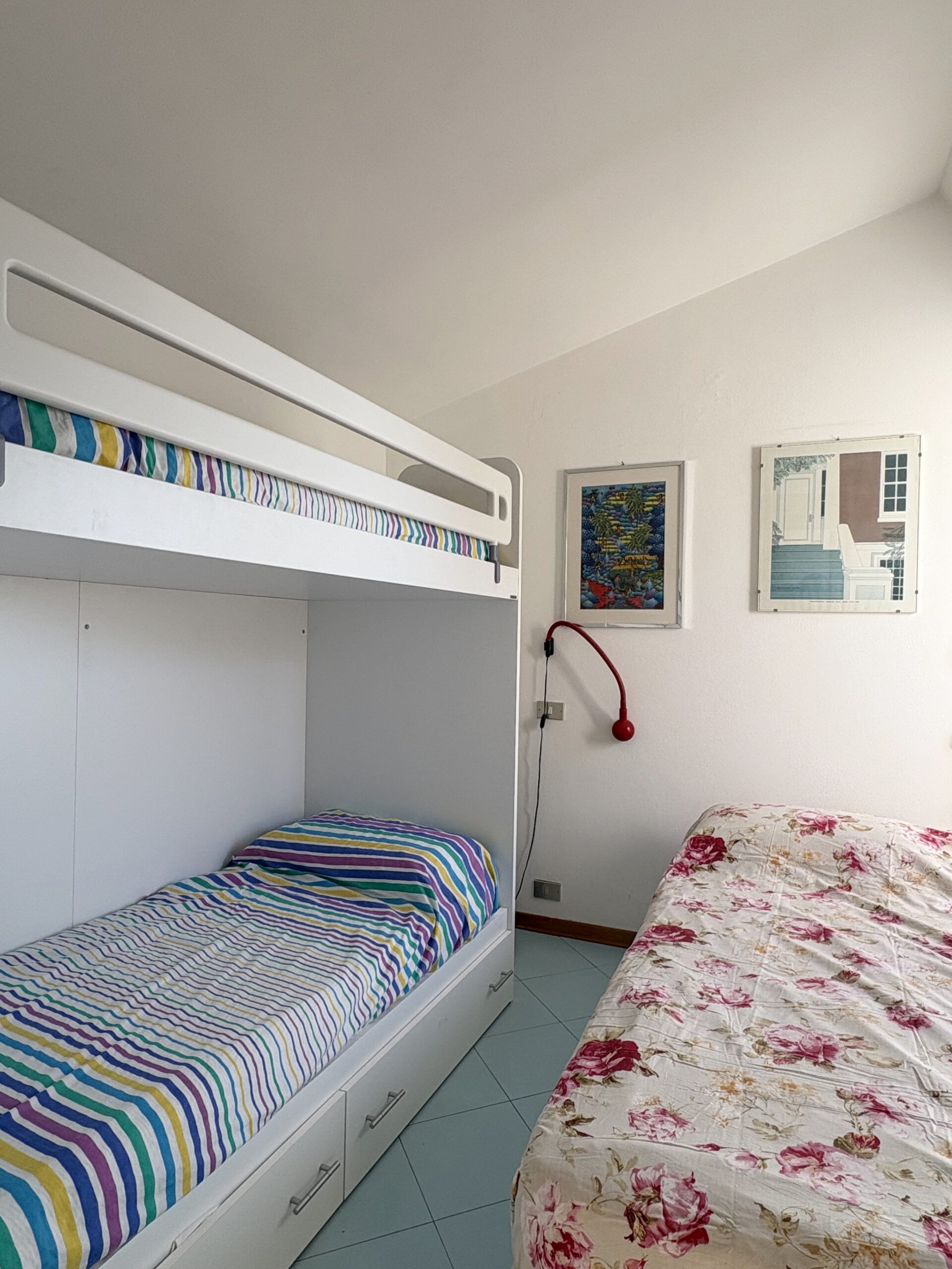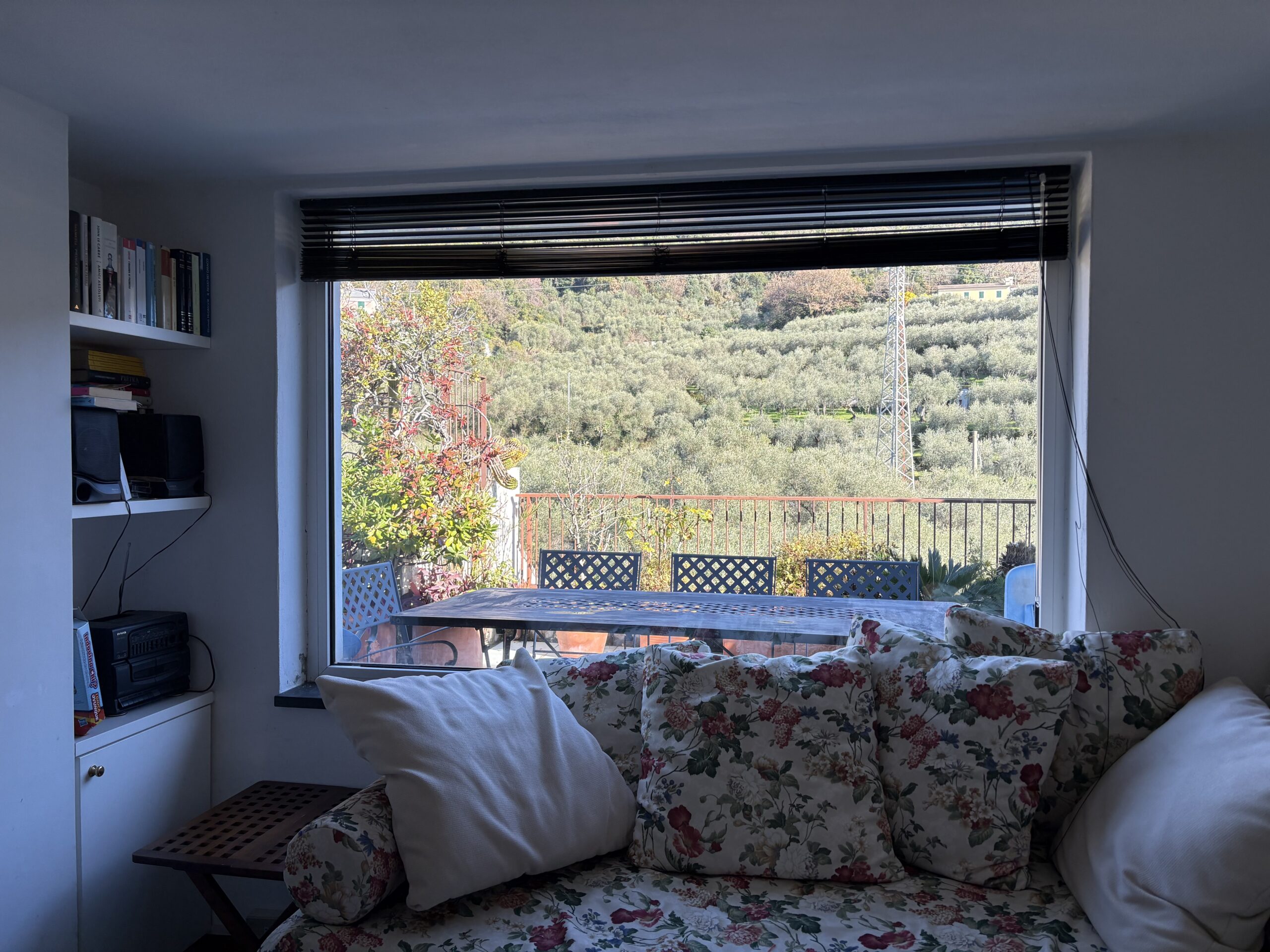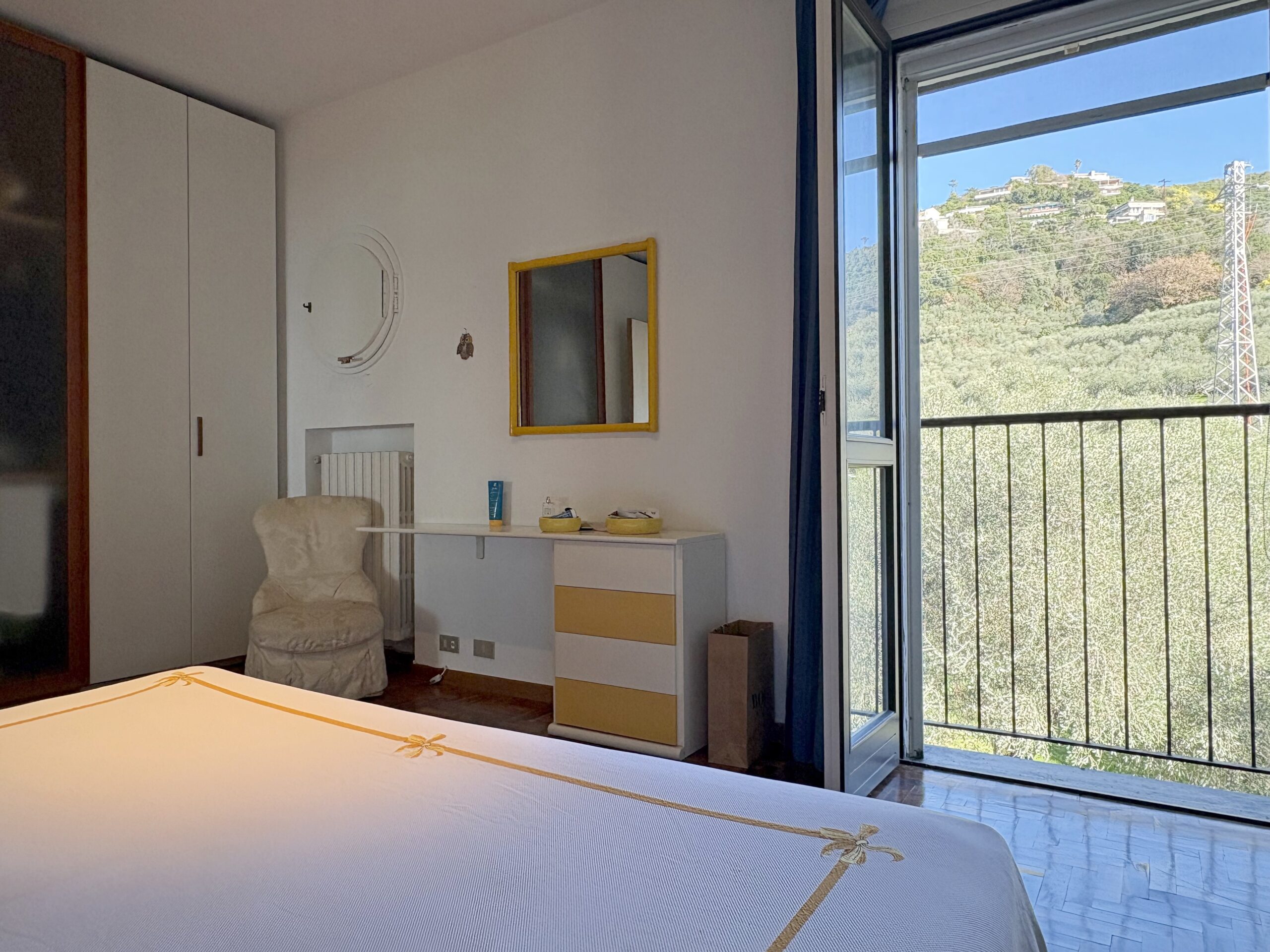 Composto da ingresso, ampio soggiorno totalmente finestrato sul mare, angolo cottura separato, bagno e camera da letto matrimoniale. Al piano superiore trovano spazio 2 camere da letto, un secondo bagno, uno studio e un altro piccolo angolo cottura. Ampia terrazza squadrata vivibile con vista sulle colline e sul verde circostante.