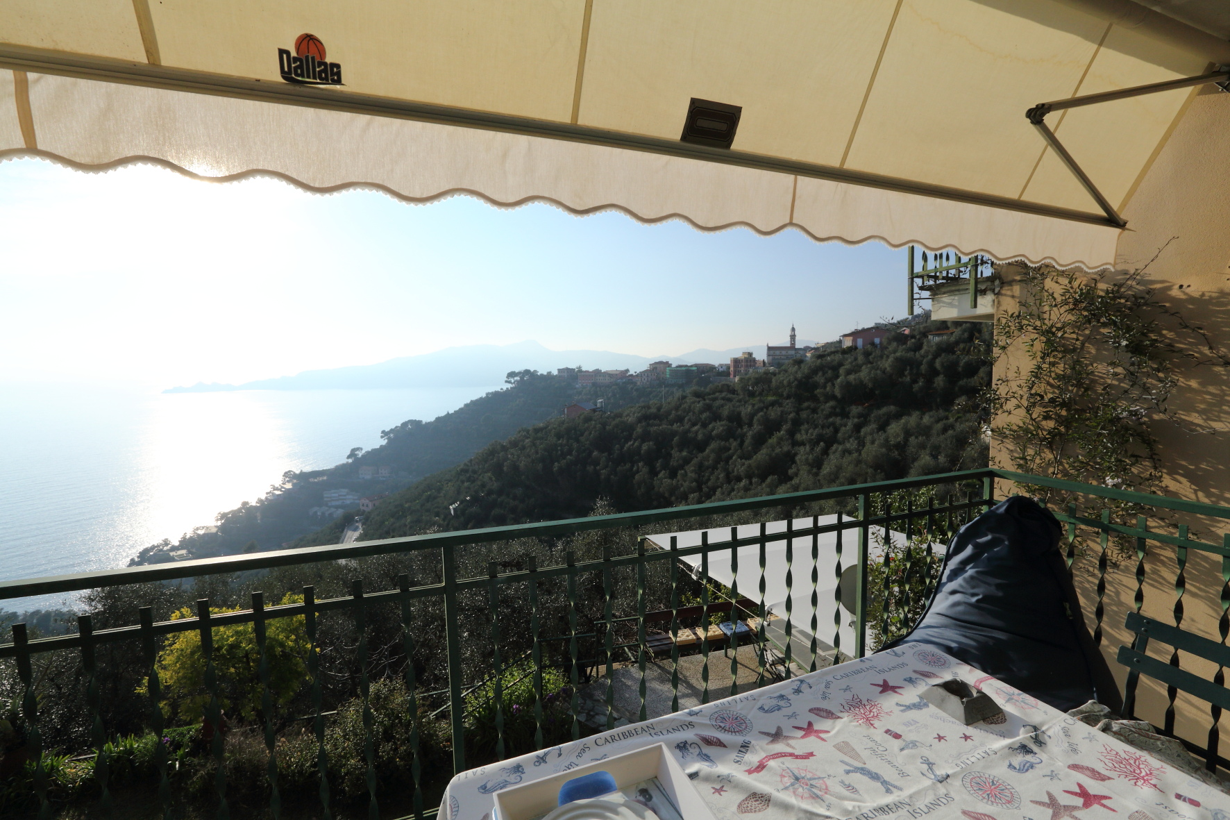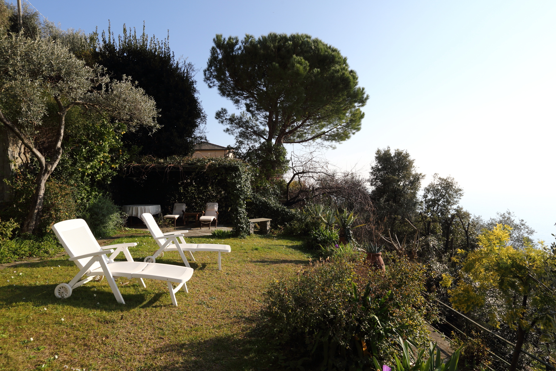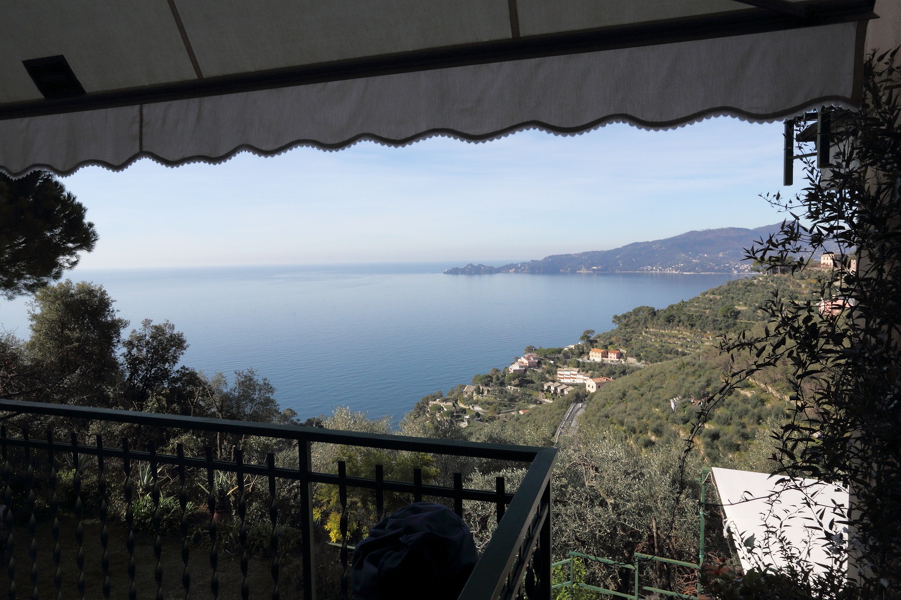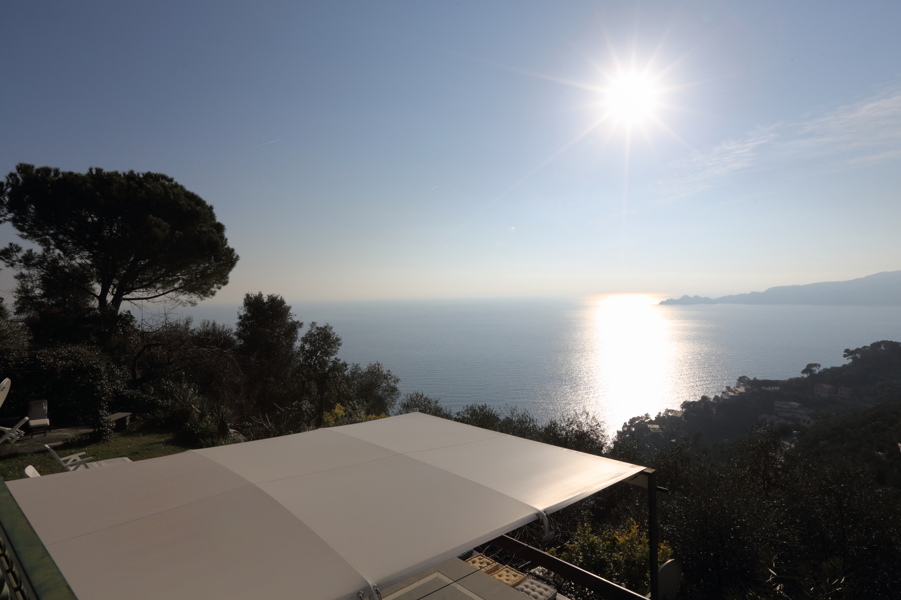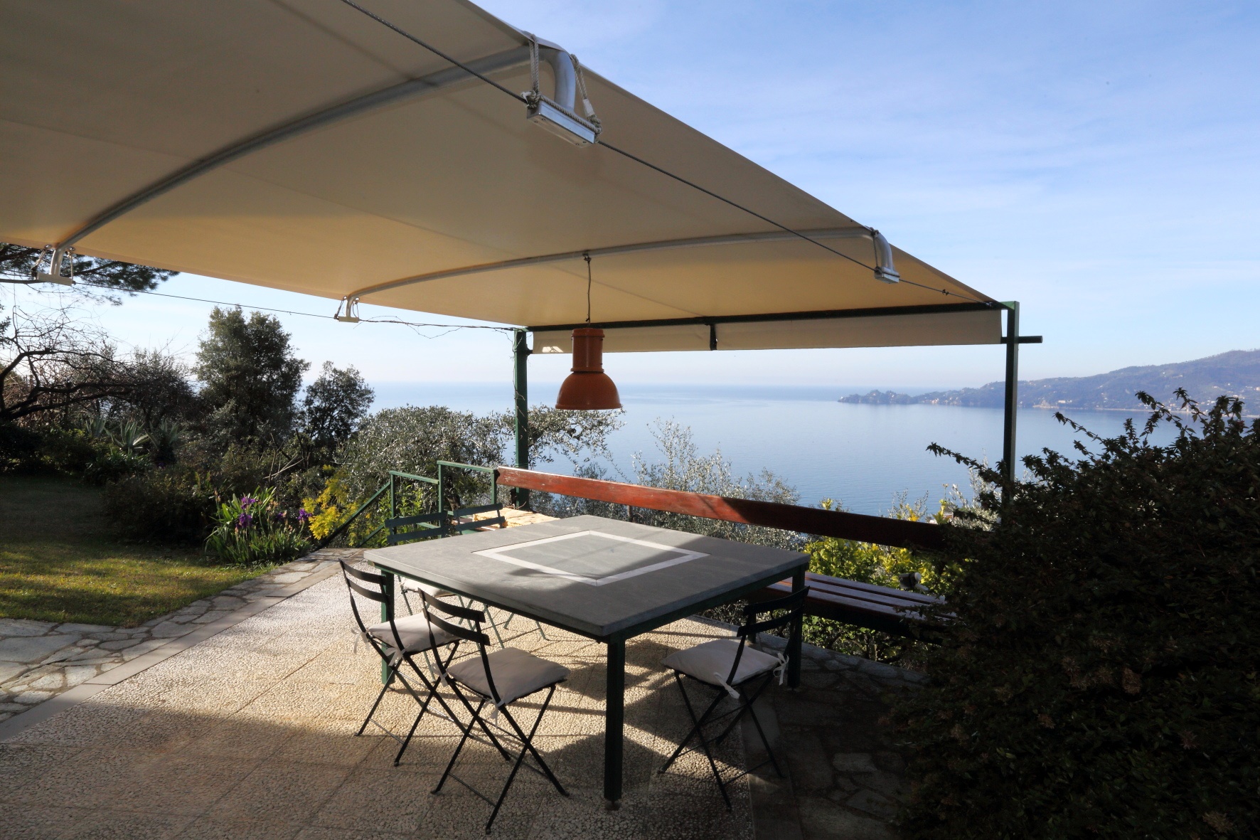 Appartamento disposto su due livelli per un totale di 230 mq interni più giardino di altri 300 mq con vista mare sul promontorio di Portofino. Due posti auto di proprietà a fianco a casa.